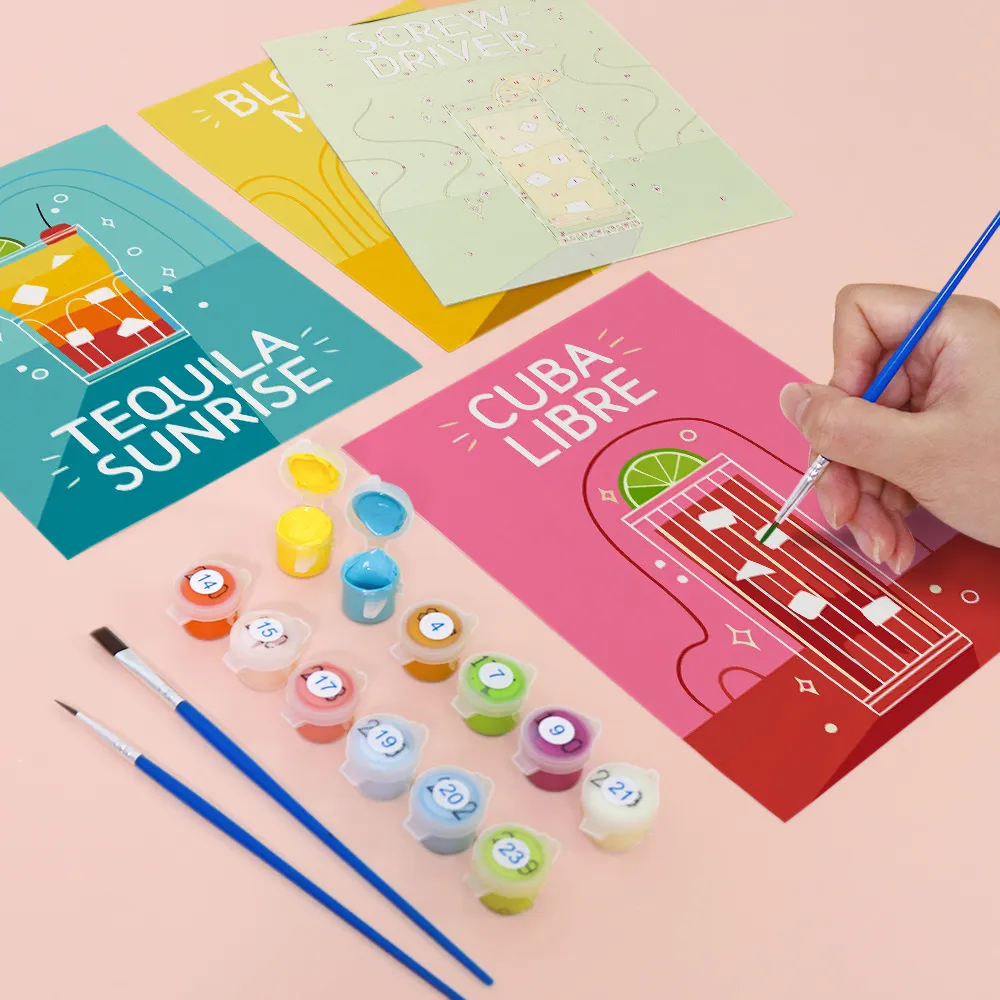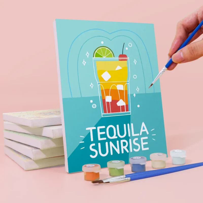 Med “Eksotiske Sommerdrinks” Mini Male efter Numre-sættet bliver hvert penselstrøg en tropisk fornøjelse. Uanset om det er kokosnød, frugtblanding eller farverige paraplyer – dette motiv udstråler ren sommerfølelse og bringer farve til hver dag. Ideelt til kreative pauser, DIY-gaver eller afslappede eftermiddage. Det forhåndstrykte minilærred, de farverige akrylmalinger og penslen gør maleri let og forfriskende for både unge og gamle.