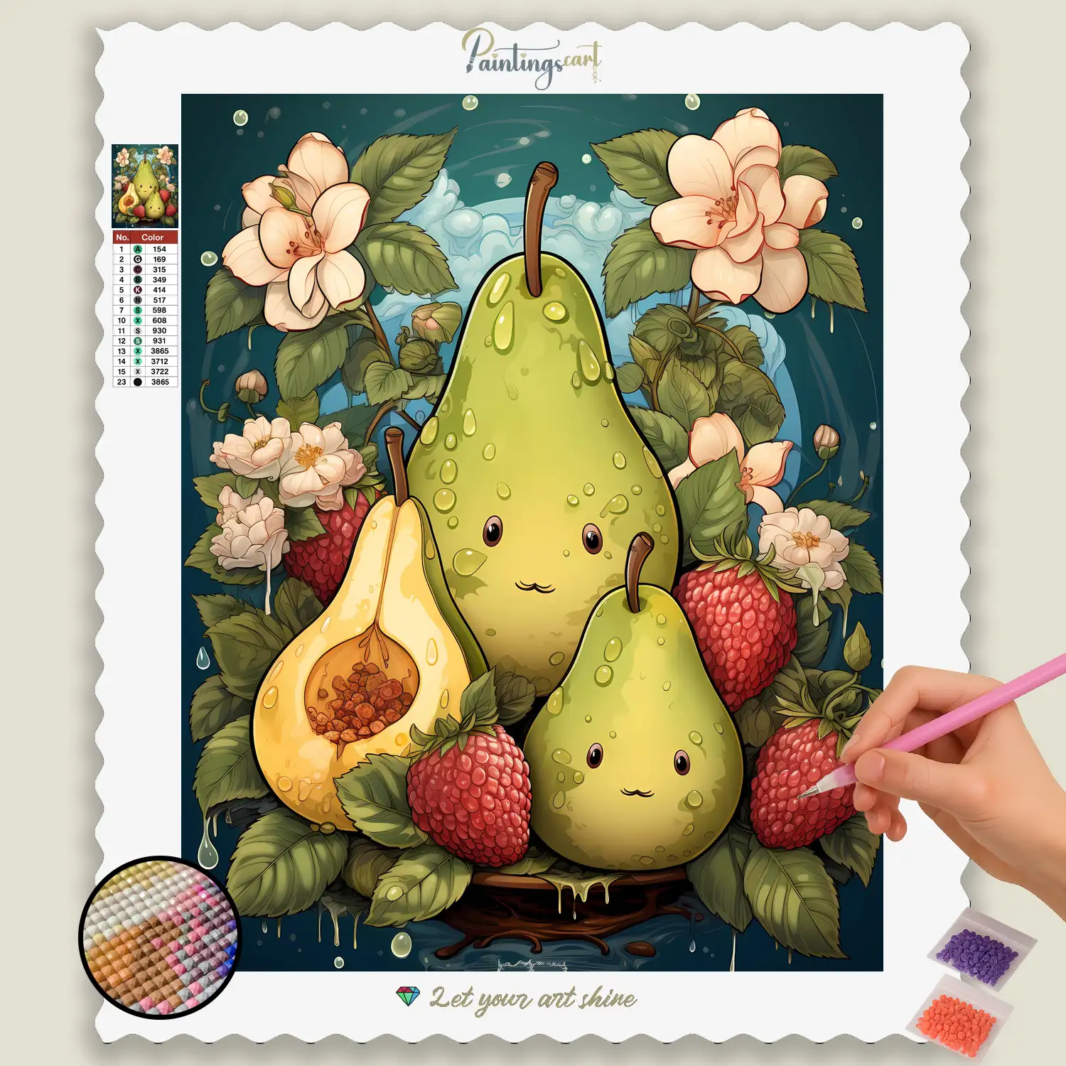 Bring en dosis munterhed og sunde vibes ind i dit hjem med vores forfriskende “Happy Avocado” Diamond Painting! Dette unikke motiv fanger essensen af en perfekt moden avocado, der udstråler ren glæde med et charmerende smil og levende grønne nuancer. Hver glitrende sten hjælper dig med at bringe dens cremede tekstur, blanke kerne og denne superfoods opkvikkende energi til live. Det er en hyldest til sund mad, tropiske lækkerier og skønheden i humoristiske naturformer. Et ideelt Diamond painting til enhver, der elsker et moderne køkken, værdsætter velvære og ønsker at bringe et strejf af unik, munter charme ind i deres hjem.