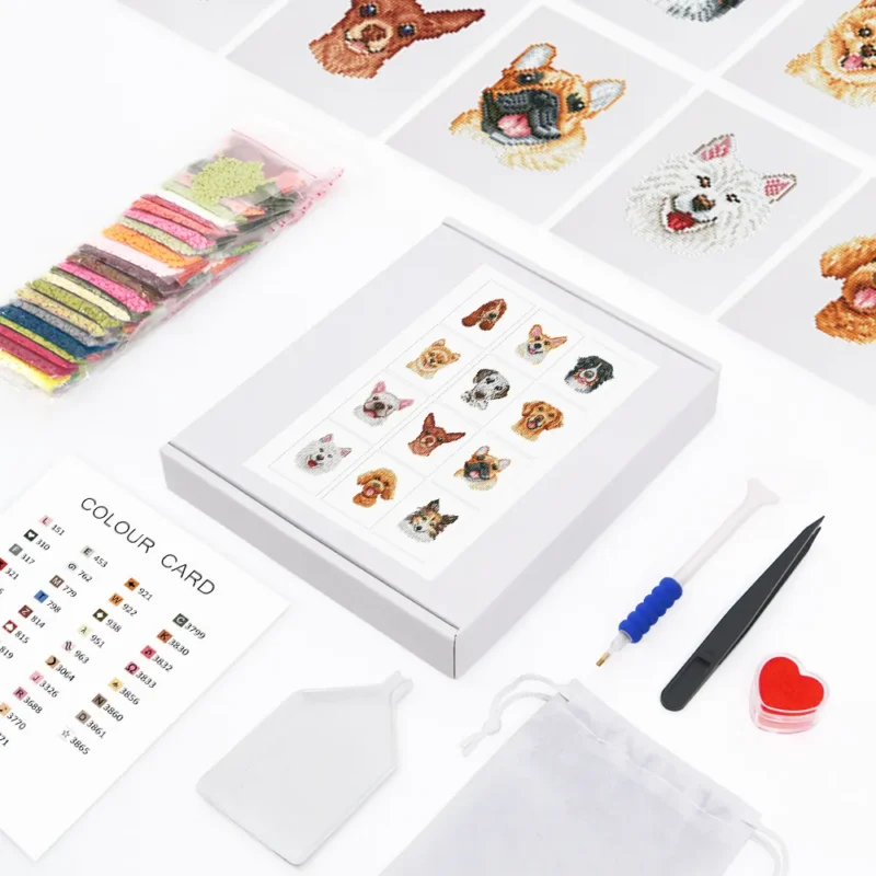 Bring menneskets bedste ven hjem i en tolvdobbelt udgave! Vores “Doggy Collection”-sæt fra Mini Diamond Paintings-serien er et absolut must-have for enhver hundeejer. I denne pakke finder du tolv forskellige, hjerteskærende søde hundedesign – fra legende hvalpe og sjove mops til elegante racchunde. Hver af de tolv billeder fanger en unik, elskværdig firbent karakter.