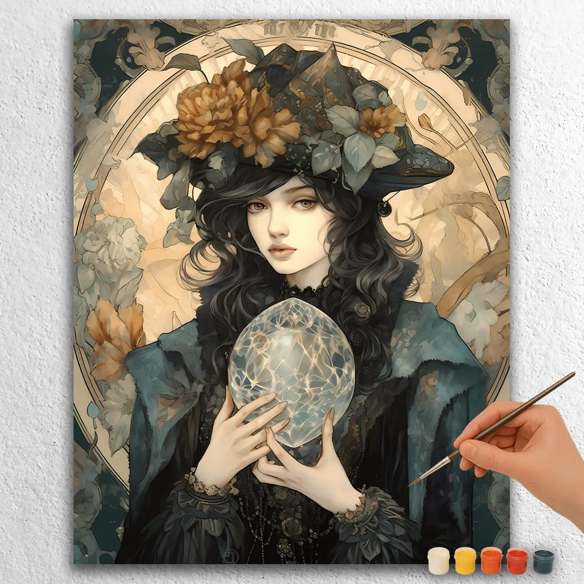 Crystal Witch er et mystisk DIY-maleri efter numre-sæt. Det fremstiller en fængslende heks omgivet af krystaller, der skaber en magisk atmosfære. Dette maleri er perfekt til dem, der elsker fantastikunst. Med levende farver tilfører det et strejf af fortryllelse til ethvert rum. Sættet inkluderer et lærred, maling og pensler, hvilket gør det nemt at skabe dette smukke kunstværk.