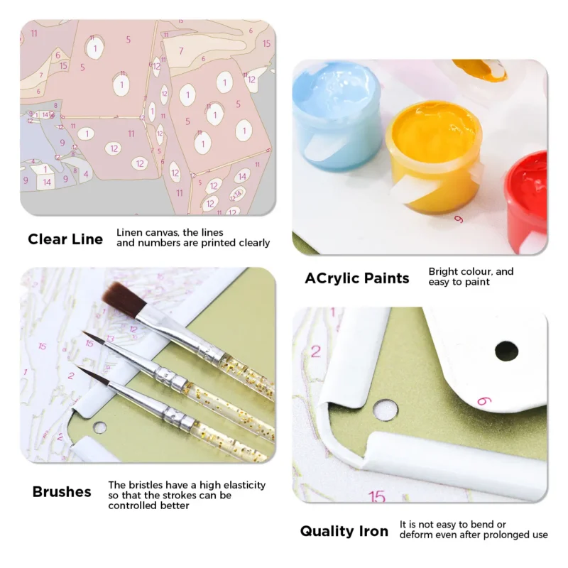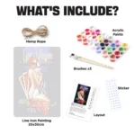 Du får alle de værktøjer og tilbehør, der kræves for at fuldføre dit metalplakat-male-efter-numre-projekt, i sættet.