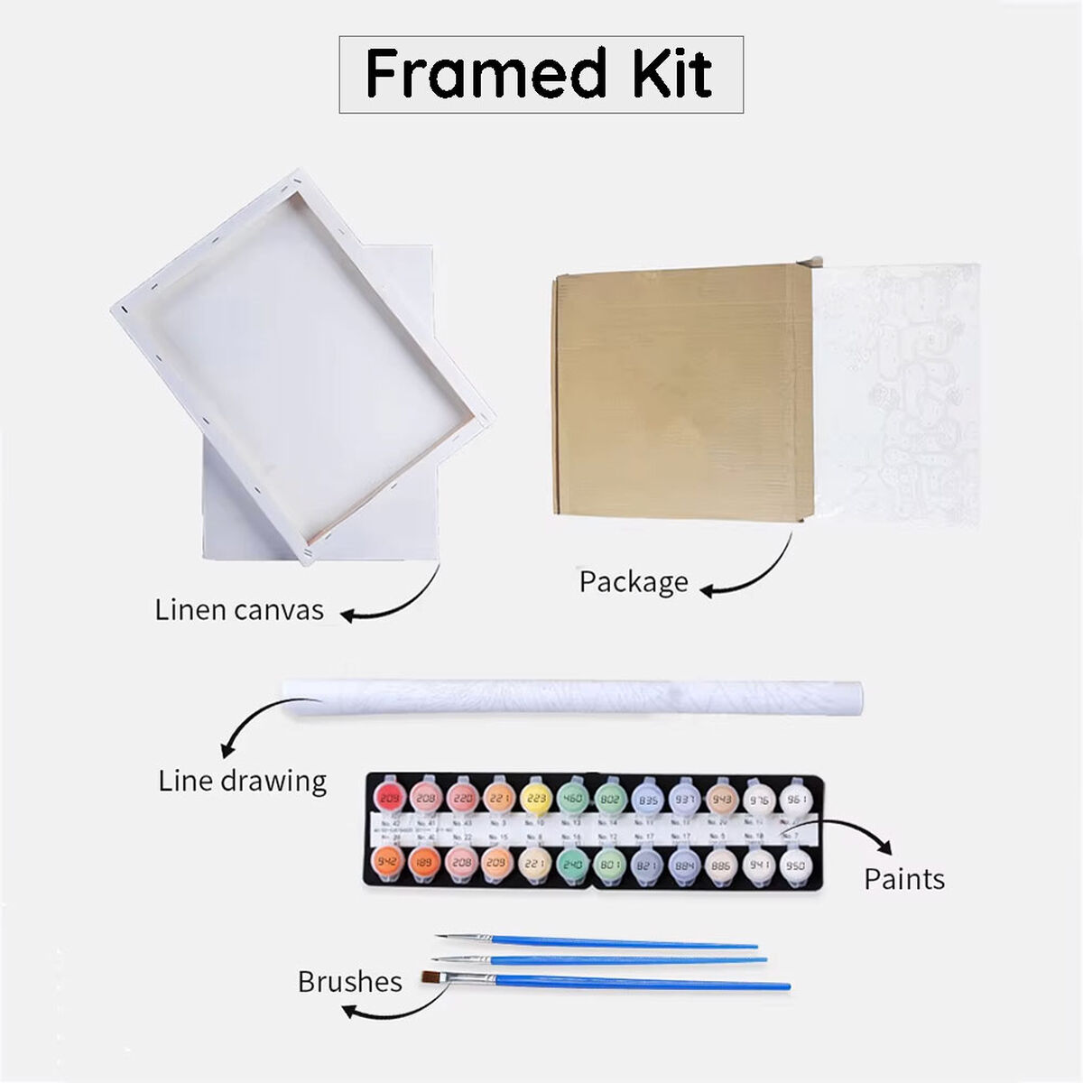 Du får alle de værktøjer og tilbehør, der er nødvendige for at fuldføre dit mal-efter-tal-projekt.