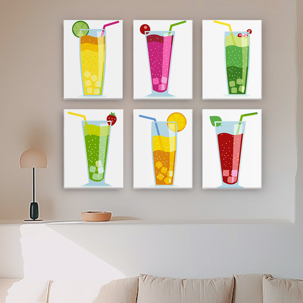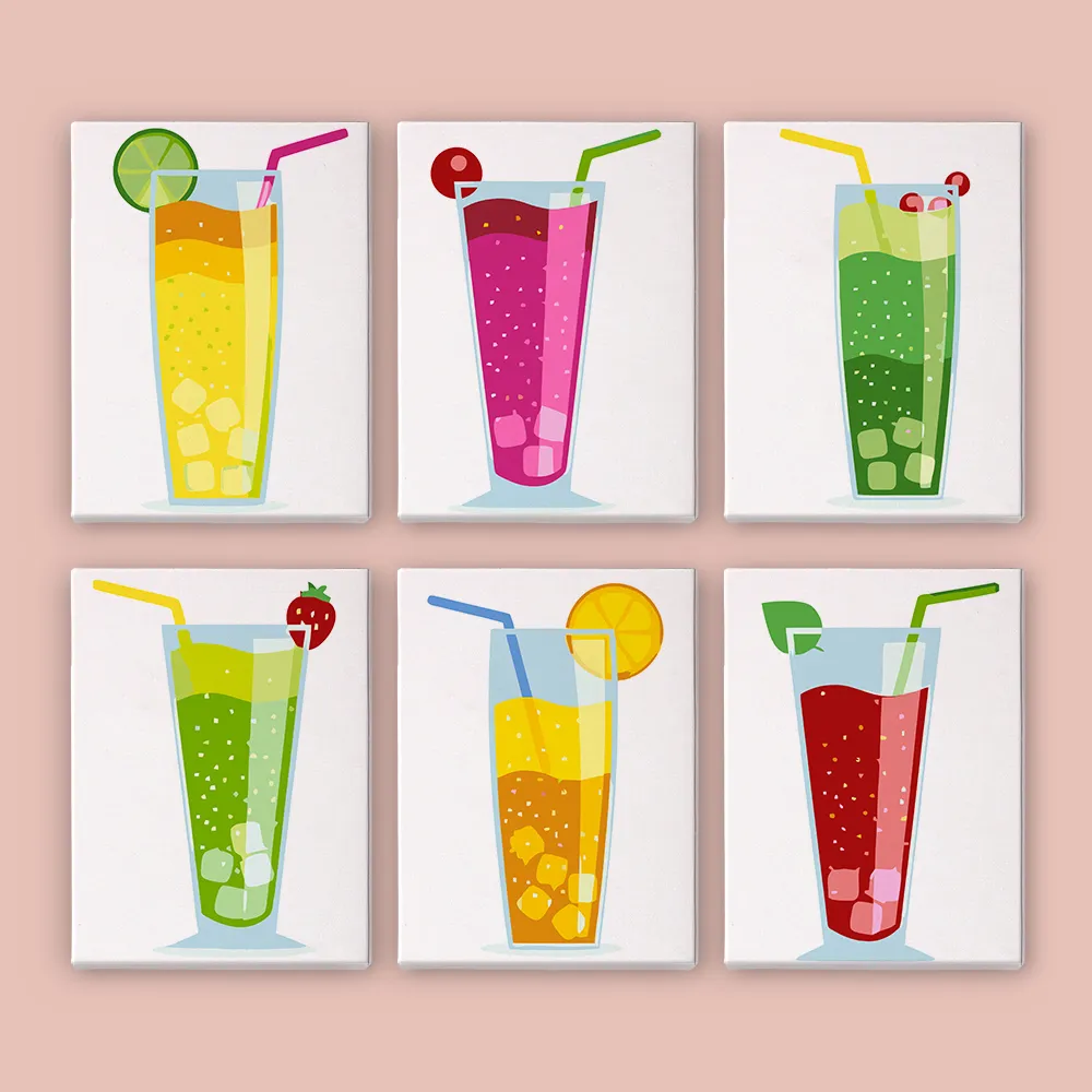 Perlerende Frugtdrikke – 6 Mini Maling efter Tal
