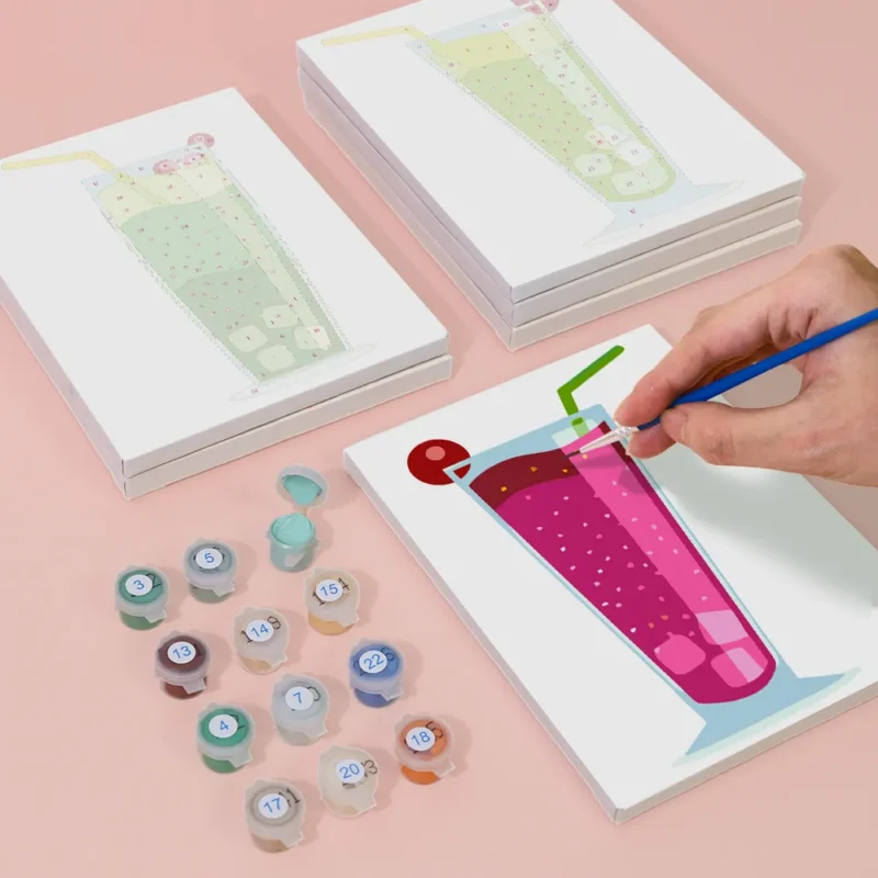 “Sprudlende Frugtdrikke” Mini Maling efter Numre-sættet kombinerer frugtagtig friskhed med sprudlende farver. Uanset om det er med appelsiner, bær eller lime – dette livfulde motiv bringer sommerglæde og kreativ energi til dit lærred. Ideelt til varme dage, kreative pauser eller som en farverig gave. Med et forhåndstrykt mini-lærred, lyse akrylmalinger og en passende pensel er sættet perfekt til begyndere, børn og DIY-enthusiaster.