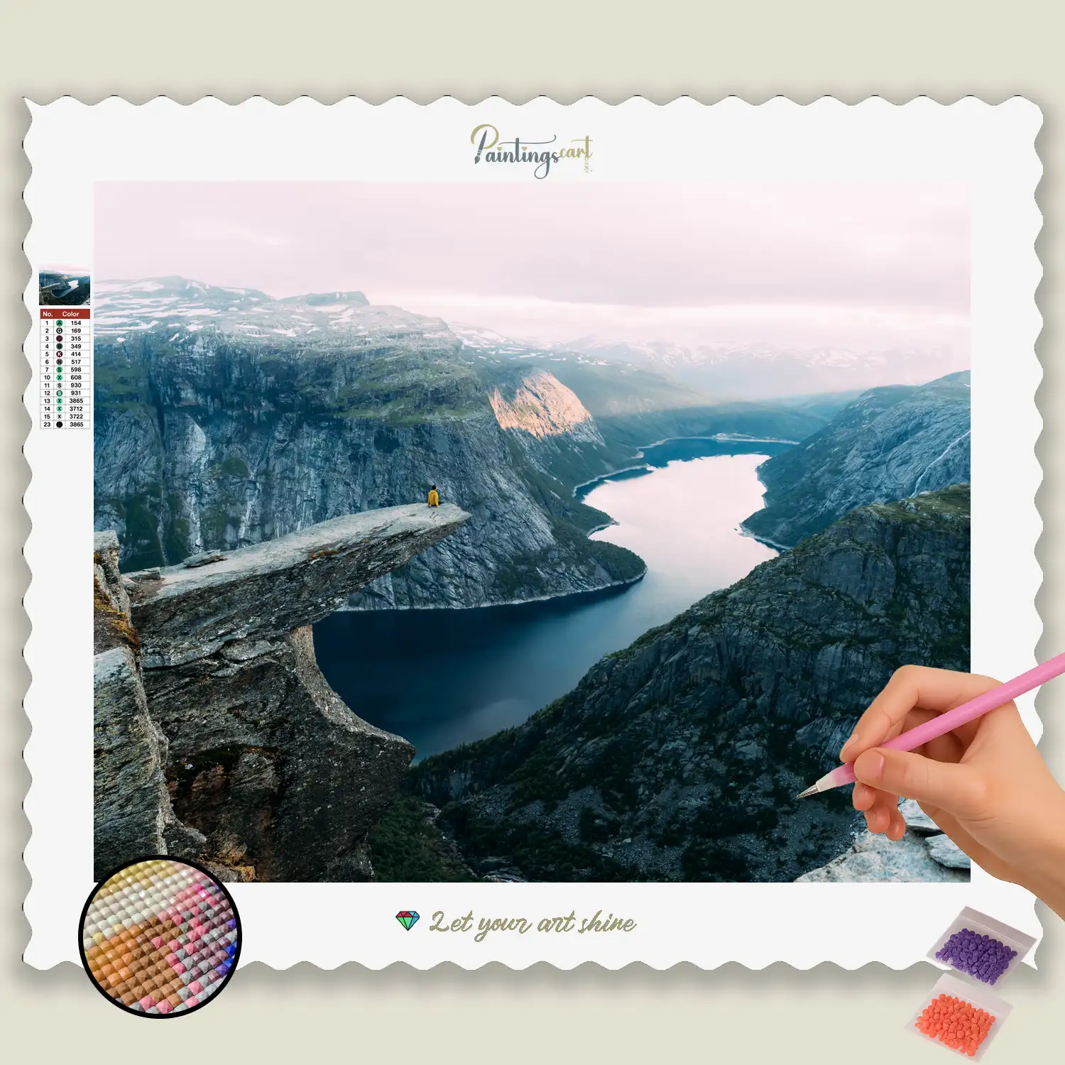 Opdag en skjult oase af ro med vores majestætiske Diamond Painting “Sø Midt i Bjergene”! Dette utroligt smukke motiv fanger den uberørte skønhed fra en krystalklar sø, fredeligt indhyllet i hjertet af majestætiske bjerge. Hver glitrende sten hjælper dig med at bringe til live himlens spejling på vandoverfladen, de stejle tinder og det uendelige vidder af alpelandskabet. Det er en hyldest til ren, utæmmet naturen og den dybe stilhed, der hersker på så afsides beliggende steder. Et ideelt Diamond painting for enhver, der længes efter absolut ro, utrolig smuk natur og en pause fra hverdagens jag.