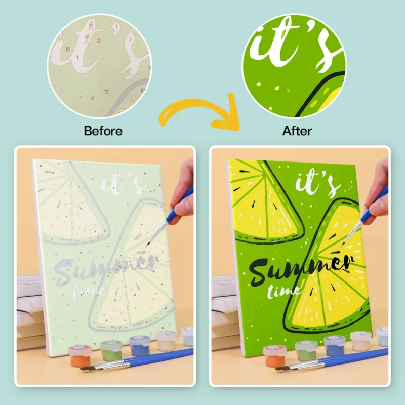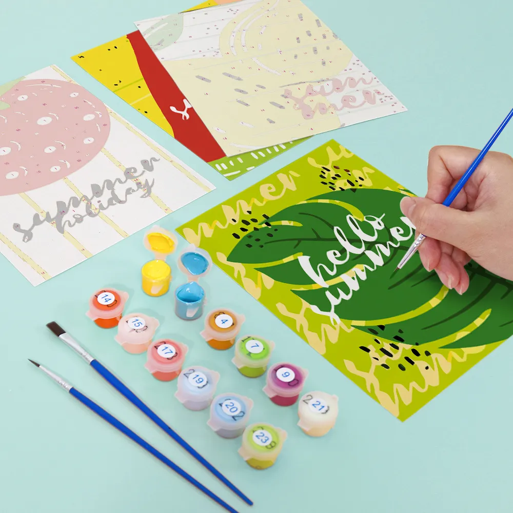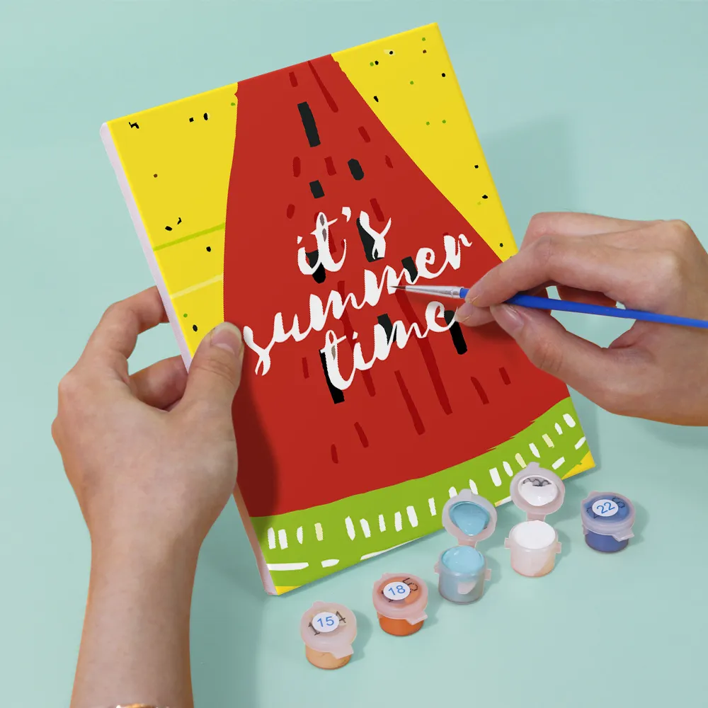 Perfekt til kreative sommerpauser, små gaver eller feriedekoration. Det kompakte sæt indeholder et fortrykt mini-lærred, lyse akrylmalinger og en pensel – ideelt til begyndere og solglade mennesker.