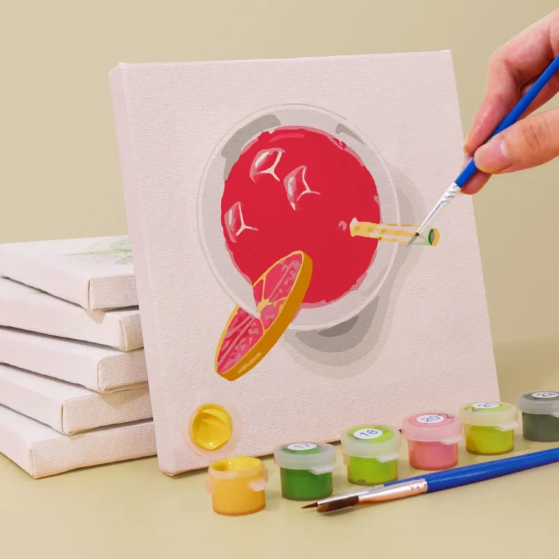 Das “Bunte Sprudelgetränke” Mini-Mal-nach-Zahlen-Set bringt sprudelnde Erfrischung und fröhliche Farben direkt auf die Leinwand. Ob mit Zitrusfrüchten, Beeren oder Minze – die fantasievollen Gläser strotzen vor Lebensfreude und Sommerfeeling. Ideal für kreative Pausen, als kleines DIY-Geschenk oder sommerliche Dekoration. Die vorbedruckte Mini-Leinwand, strahlende Acrylfarben und der enthaltene Pinsel machen das Malen einfach, farbenfroh und entspannend – auch für Anfänger.