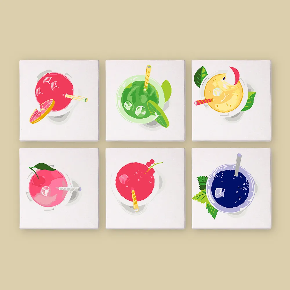 Farbenfrohe funkelnde Getränke – 6 Mini-Mal-nach-Zahlen