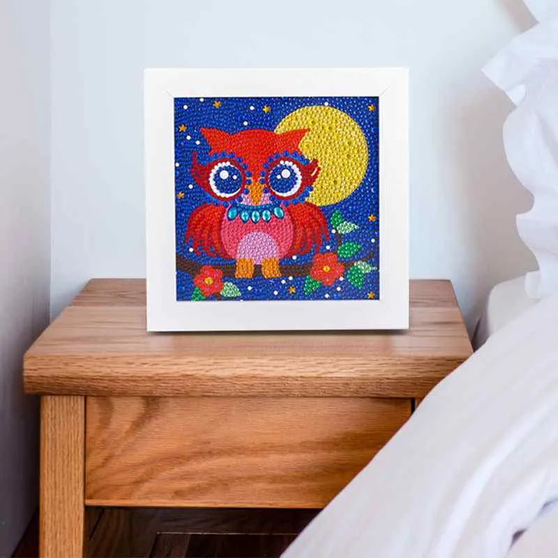 Wer ist der bunteste Vogel im Wald? Natürlich unser “Rainbow Owl”! Dieses Set ist eines unserer kleinsten und fröhlichsten Mini-Diamond-Paintings und perfekt für die allerersten kreativen Schritte. Das Design zeigt einen niedlichen Kauz, dessen Federn in allen Regenbogenfarben leuchten. Mit seiner extra kleinen Größe und den einfachen, klaren Farbflächen ist dieses Bild ideal, um Kindern ab 6 Jahren ein schnelles und motivierendes Erfolgserlebnis zu vermitteln.