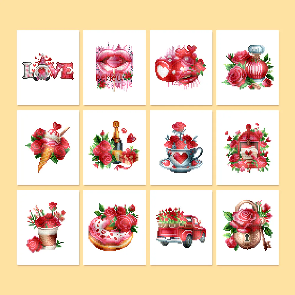 Flüstern Sie Ihre Zuneigung auf die funkelndste Weise mit unserem 12-teiligen “Heart Collection”-Set! Dieses Set aus unserer Mini-Diamond-Paintings-Kollektion ist eine Feier der Liebe in all ihren Formen. In dieser Packung finden Sie zwölf verschiedene, romantische Designs, die direkt ins Herz treffen – von eleganten Herzen und zarten Rosen über Liebesbriefe und gurrende Vögel bis hin zu “Love”-Schriftzügen.