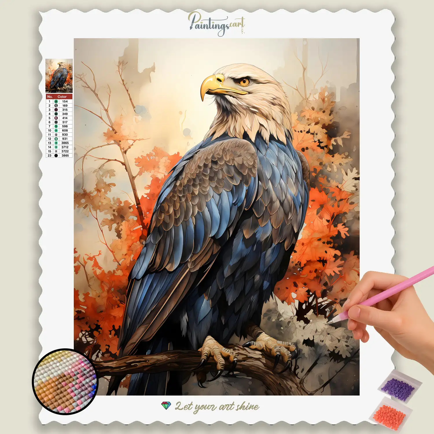 Créez un chef-d'œuvre scintillant qui inspire l'âme et crée une atmosphère de majesté et de beauté intemporelle. Ce produit de haute qualité Kit de Diamond Painting offre non seulement une échappée merveilleusement relaxante et créative, mais aussi un résultat époustouflant que vous pourrez fièrement exposer chez vous. Que ce soit comme point focal impressionnant dans votre bureau ou salon, un ajout prestigieux à votre collection, ou comme cadeau parfait cadeau pour les visionnaires, les leaders et les amoureux de la nature – ce pour les rêveurs, les fans de fantasy et tous ceux qui apprécient une touche de magie quotidienne – cette Diamond Painting est un moyen fabuleux de capturer l'attrait d'un aigle et son majestueux éclat dans une œuvre d'art chatoyante.