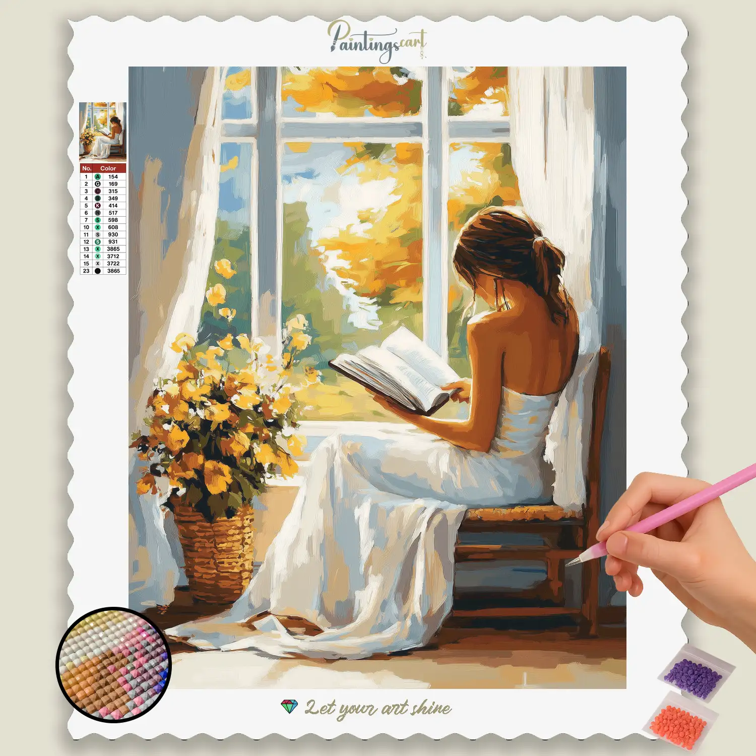Plongez dans une scène de contemplation paisible avec notre enchanteur Diamond Painting “ Fille en blanc à la fenêtre (Lecture) ” ! Ce motif intimiste capture la beauté paisible d'une fille en robe blanche, absorbée par un livre alors qu'elle est assise doucement près de la fenêtre. Chaque strass scintillant vous aide à donner vie aux plis délicats de la robe, à l'expression concentrée et à la lumière entrante. C'est un hommage à la joie de la lecture, à la magie des moments tranquilles et à la grâce intemporelle de la jeunesse. Idéal Broderie diamant pour tous ceux qui apprécient les scènes littéraires, le confort douillet et une atmosphère de sérénité.