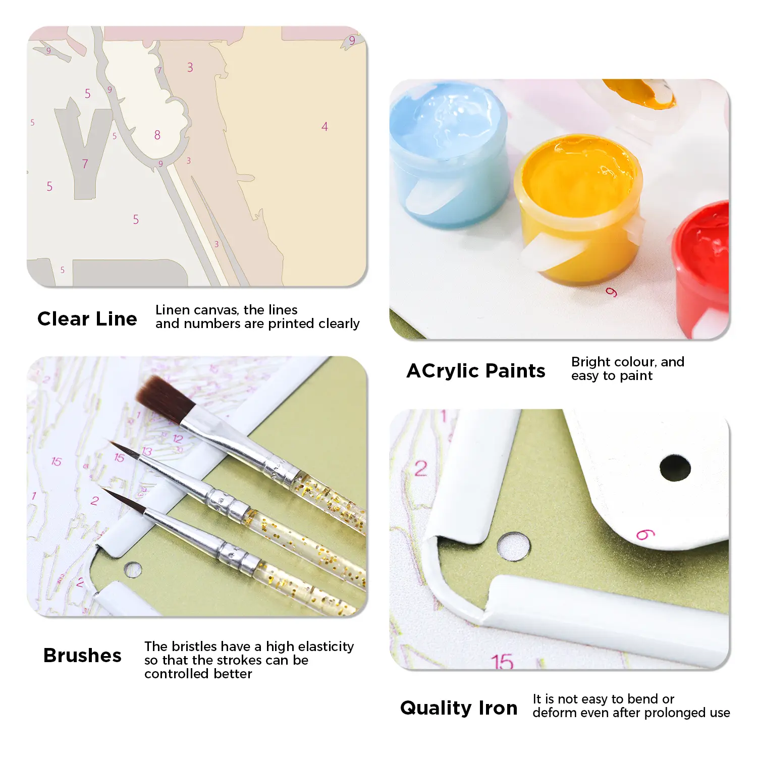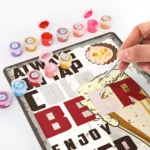 Vous recevrez tous les outils et accessoires nécessaires pour réaliser votre projet de peinture numérotée sur affiche métallique dans le kit.