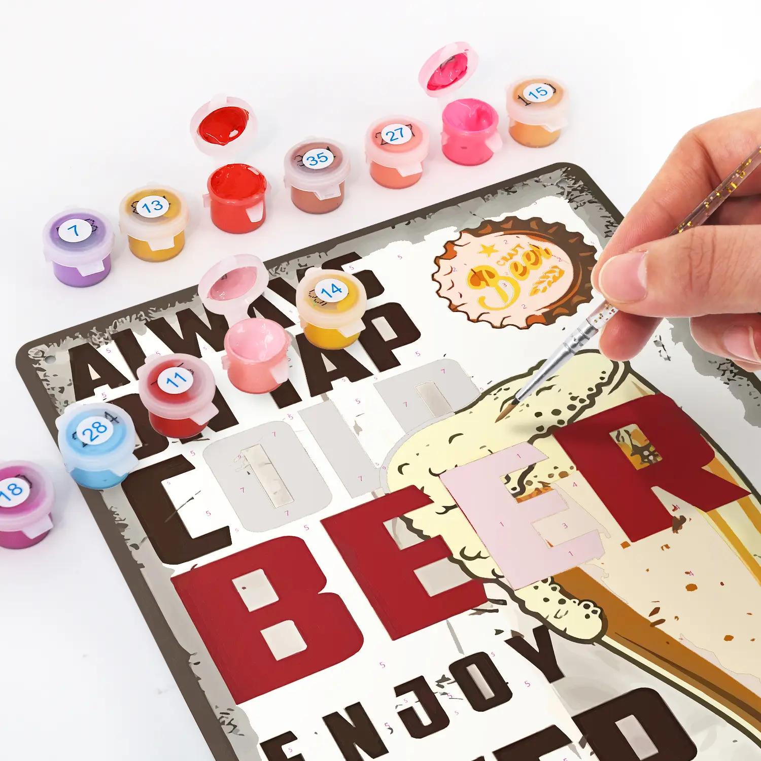 Rehaussez votre bar ou votre intérieur avec le Beer Every Moment DIY Metal Poster. Cette affiche de style vintage mesure 20x30 cm et présente des coins arrondis pour une finition élégante. Fabriquée en métal, elle apporte une touche de raffinement à toute pièce. Idéale pour les amateurs de projets DIY, cette peinture par numéros vous permet de créer une œuvre d'art unique. Sa taille compacte la rend parfaite pour les petits espaces, tandis que son design vintage lui permet de se démarquer dans des environnements plus grands.