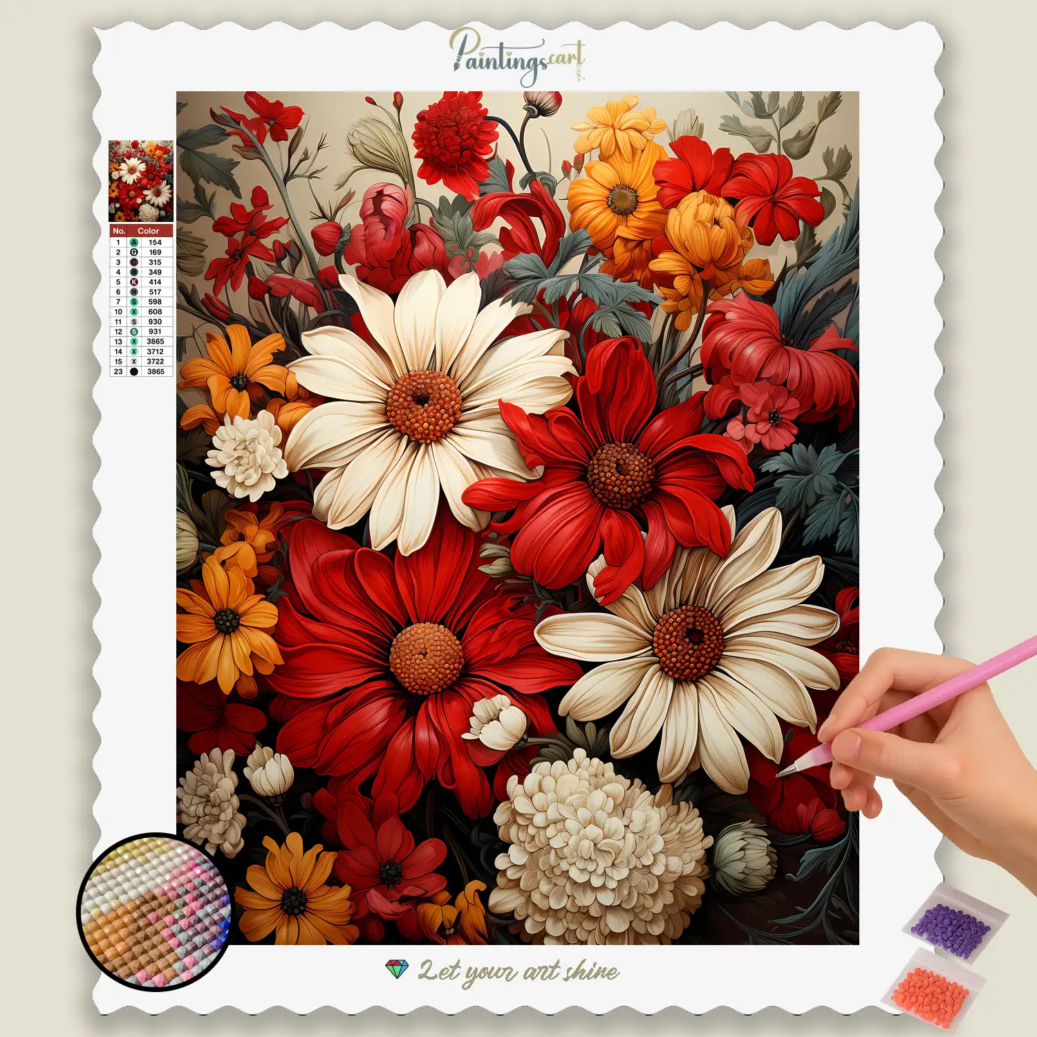 Apportez les teintes chaleureuses de l'automne dans votre maison avec notre enchanteur Diamond Painting “ Splendeur Florale Automnale ” ! Ce motif unique capture la beauté riche et multiple fleurs qui s'épanouit dans la profusion de l'automne. Imaginez des rouges profonds, des ors vibrants et des bruns terreux reflétant la douce mélancolie et les récoltes abondantes de cette saison. Chaque strass scintillant vous aide à donner vie aux pétales délicats, aux formes distinctives et à l'atmosphère chaleureuse qu'apporte l'automne. C'est un hommage aux dons de nature, à la splendeur colorée de la transformation, et à l'élégance intemporelle que la nature révèle en automne. Un idéal Broderie diamant pour tous ceux qui aiment les décorations saisonnières et souhaitent ajouter une touche de chaleur et de naturel à leur intérieur.