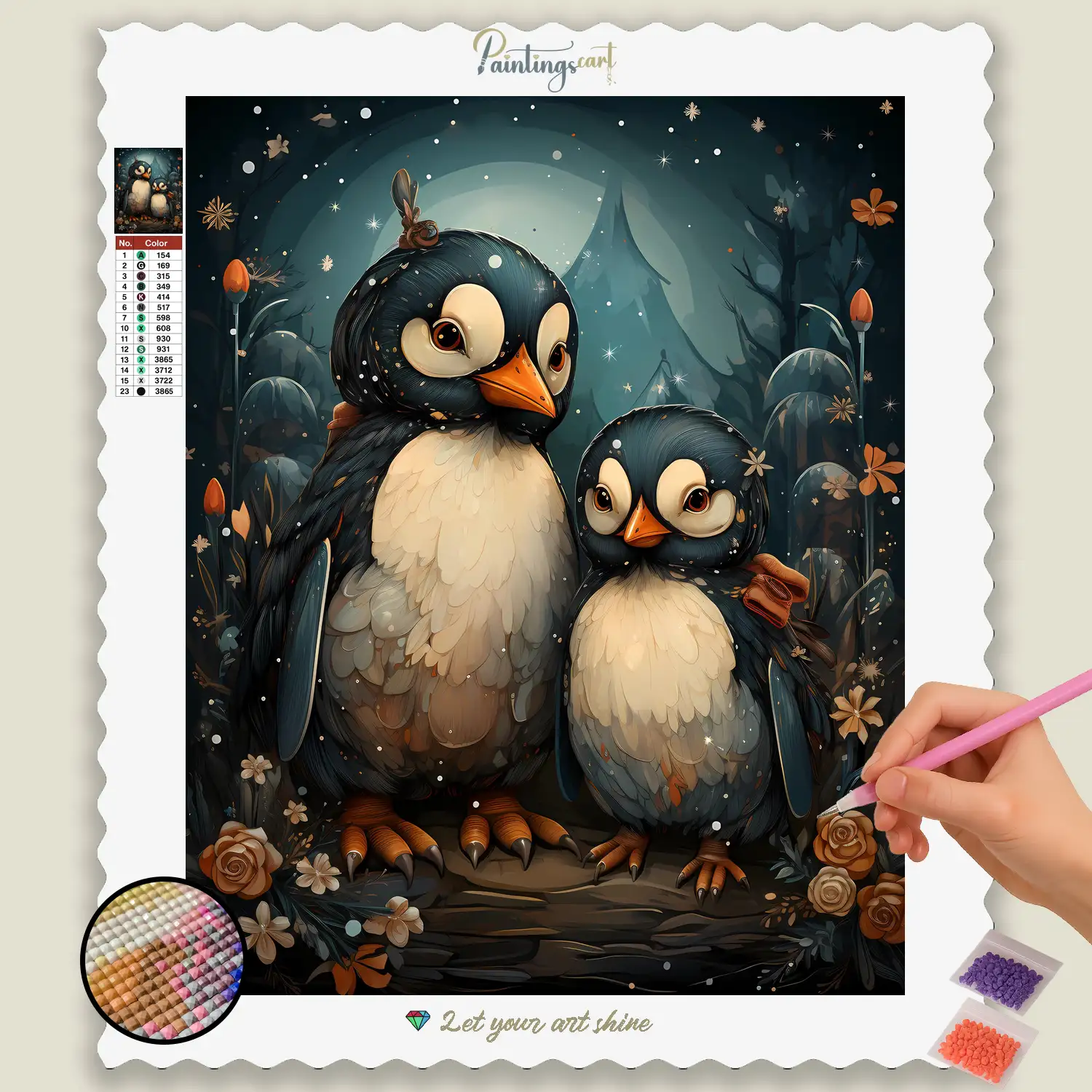 Crea un capolavoro scintillante che riscalda l'anima e crea un'aura di allegria e gioia spensierata. Questo Set di Diamond Painting di alta qualità non solo offre una fuga meravigliosamente rilassante e creativa, ma anche un risultato mozzafiato che puoi esporre con orgoglio. Che sia come affascinante punto di attrazione nella camera dei bambini o in salotto, un'aggiunta stimolante alla tua collezione, o come perfetto regalo per appassionati di anime, amanti dei pinguini e chiunque abbia bisogno di un sorriso sul volto – questi quadro Diamond Painting è un modo favoloso per catturare l'appeal di adorabili pinguini Kawaii si trasforma in un’opera d’arte luminosa.