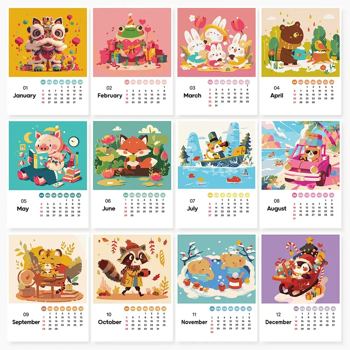 Calendario 2025 con personaggi carini
