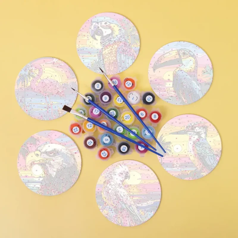 Uccelli Colorati – Tappetino per Birra Fai da Te Dipingi per Numeri