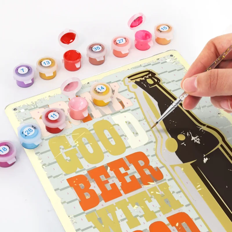 Arricchisci l'arredamento del tuo bar o della tua casa con il Poster Metallico Fai da Te Bevi Buona Birra. Questo poster in stile vintage misura 20x30 cm o 7,8×11,8 pollici e presenta angoli arrotondati per un aspetto elegante. Realizzato in metallo resistente, aggiunge un tocco di nostalgia a qualsiasi ambiente. Perfetto per gli appassionati di birra, questo poster fai da te dipingi per numeri ti permette di creare un'opera d'arte unica che riflette la tua personalità. Le sue dimensioni compatte lo rendono ideale per spazi ridotti, mentre il design vintage garantisce un'armoniosa integrazione sia con arredi moderni che tradizionali.