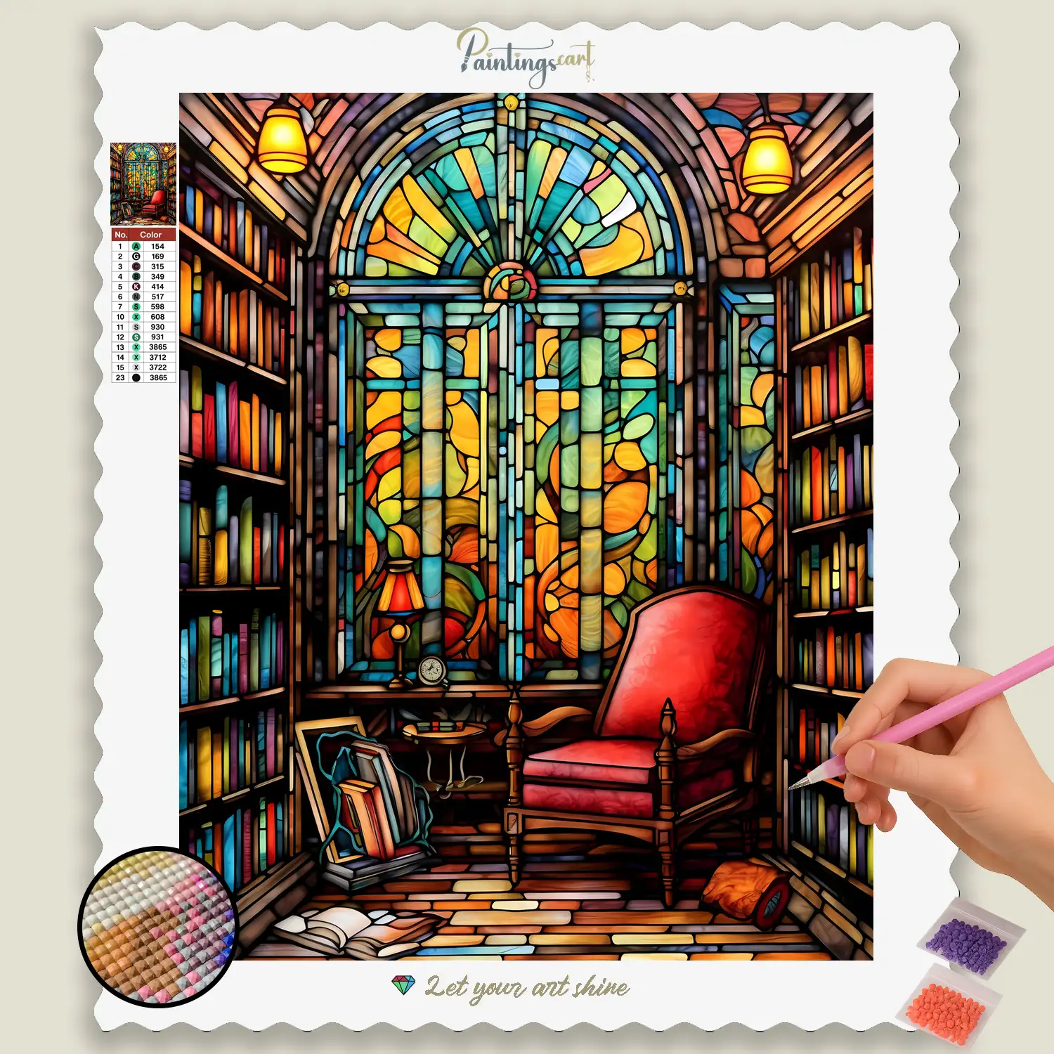 Breng een sfeer van warmte en artistiek licht in uw huis met onze betoverende Diamond Painting “Gezellige Kamer met Glas-in-Lood”! Dit unieke motief vangt de huiselijke comfort van een gezellige kamer, waarvan de ramen of lampen schitteren met verblindend glas in lood glas-in-lood in levendige kleuren. Elke glinsterende steen helpt u de zachte lichtspelingen, de ingewikkelde patronen van het glas en de uitnodigende ambiance die zo'n kamer uitstraalt tot leven te brengen. Het is een eerbetoon aan de kunst van interieurontwerp, aan de schoonheid die licht en kleur kunnen creëren, en aan de rust die gevonden wordt in een liefdevol ingericht huis. Een ideaal Diamond Painting werk voor iedereen die van design houdt, verlangt naar gezelligheid en een dosis elegante comfort in huis wil toveren.