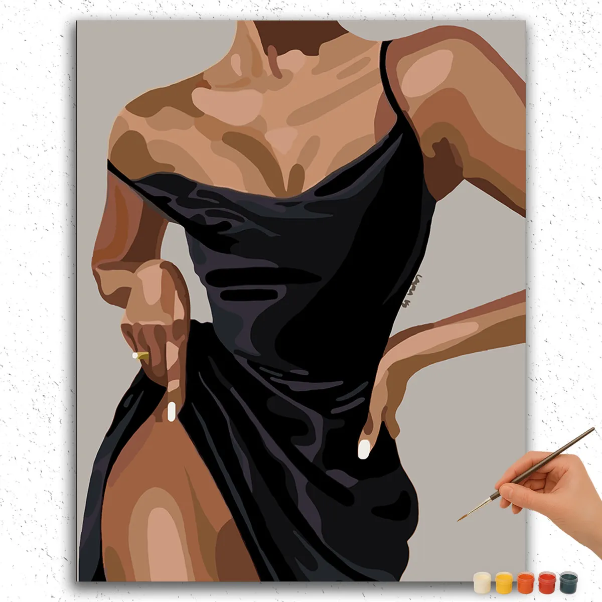 Transformeer uw ruimte met de “The Beauty in Black” DIY-schilderset. Dit elegante kunstwerk bevat een verbluffend zwarte jurkontwerp dat verfijning brengt in elke kamer. De set bevat alles wat u nodig heeft: genummerd canvas, hoogwaardige acrylverf en penselen.