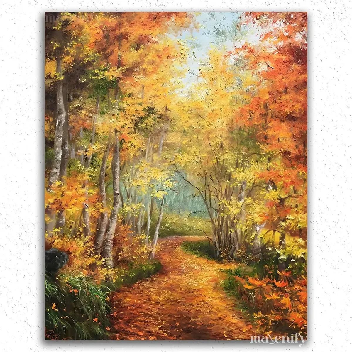 Omarm de warmte van het seizoen met de Way to Autumn Verf op Nummer Kit. Dit prachtige DIY-kunstwerk vangt de levendige kleuren en gezellige sfeer van de herfst, perfect voor het decoreren van uw huis of als cadeau voor dierbaren. Het is een ontspannende creatieve activiteit die de schoonheid van de natuur tot leven brengt.