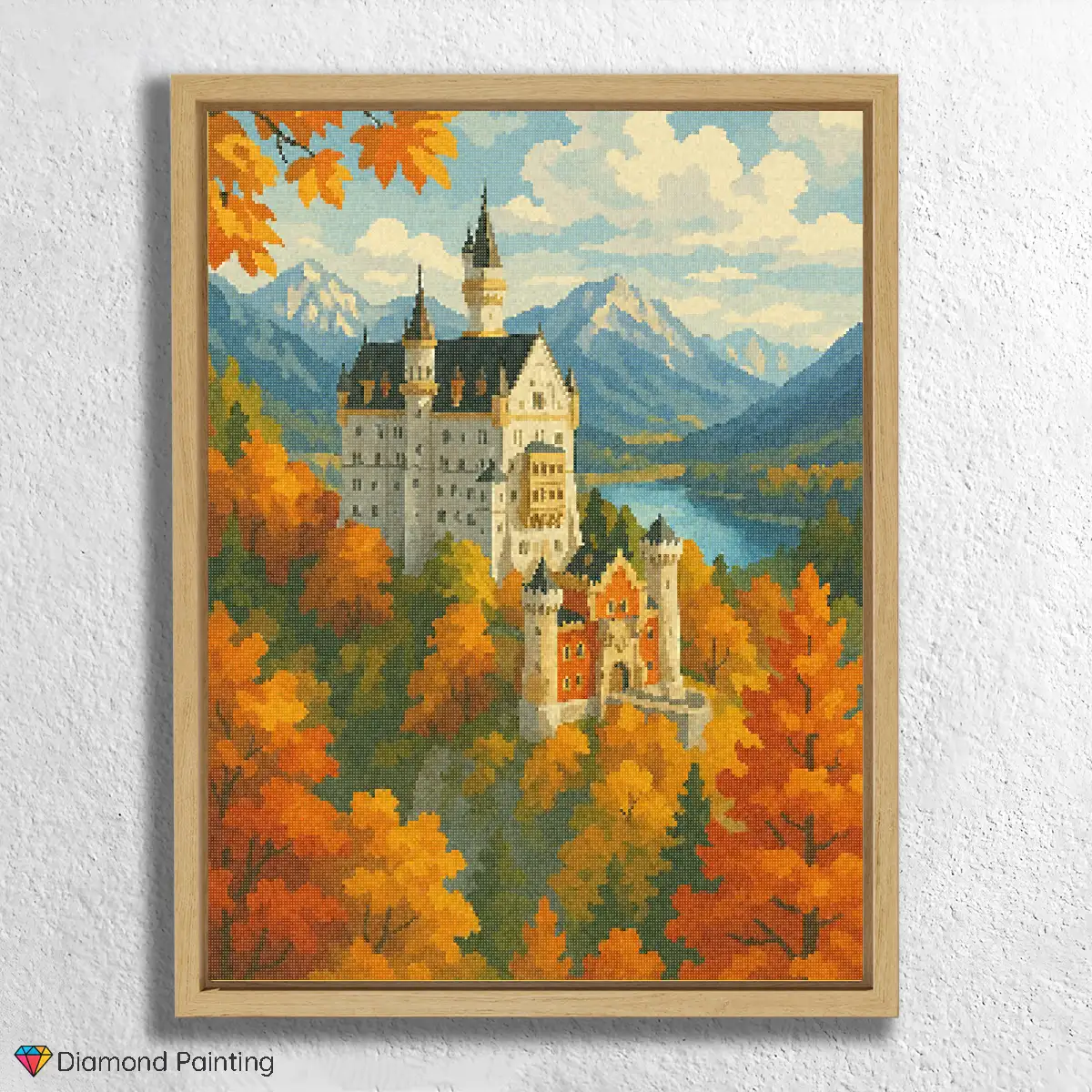 Escape to a fairytale castle in the heart of Bavaria with our majestic Diamond Painting “Autumn at Neuschwanstein Castle”! This breathtaking motif captures the iconic beauty of Neuschwanstein Castle as it presents itself amidst the warm, radiant colors of autumn. Each glittering stone helps you bring to life the delicate towers of the fairytale castle, the golden tree crowns, and the peaceful, sublime atmosphere of the Bavarian landscape. It is a tribute to German history, to romance, and to the endless fascination emanating from this architectural wonder. An ideal Diamond Painting for all who are passionate about history, travel, and wish to bring a touch of royal magic into their home.