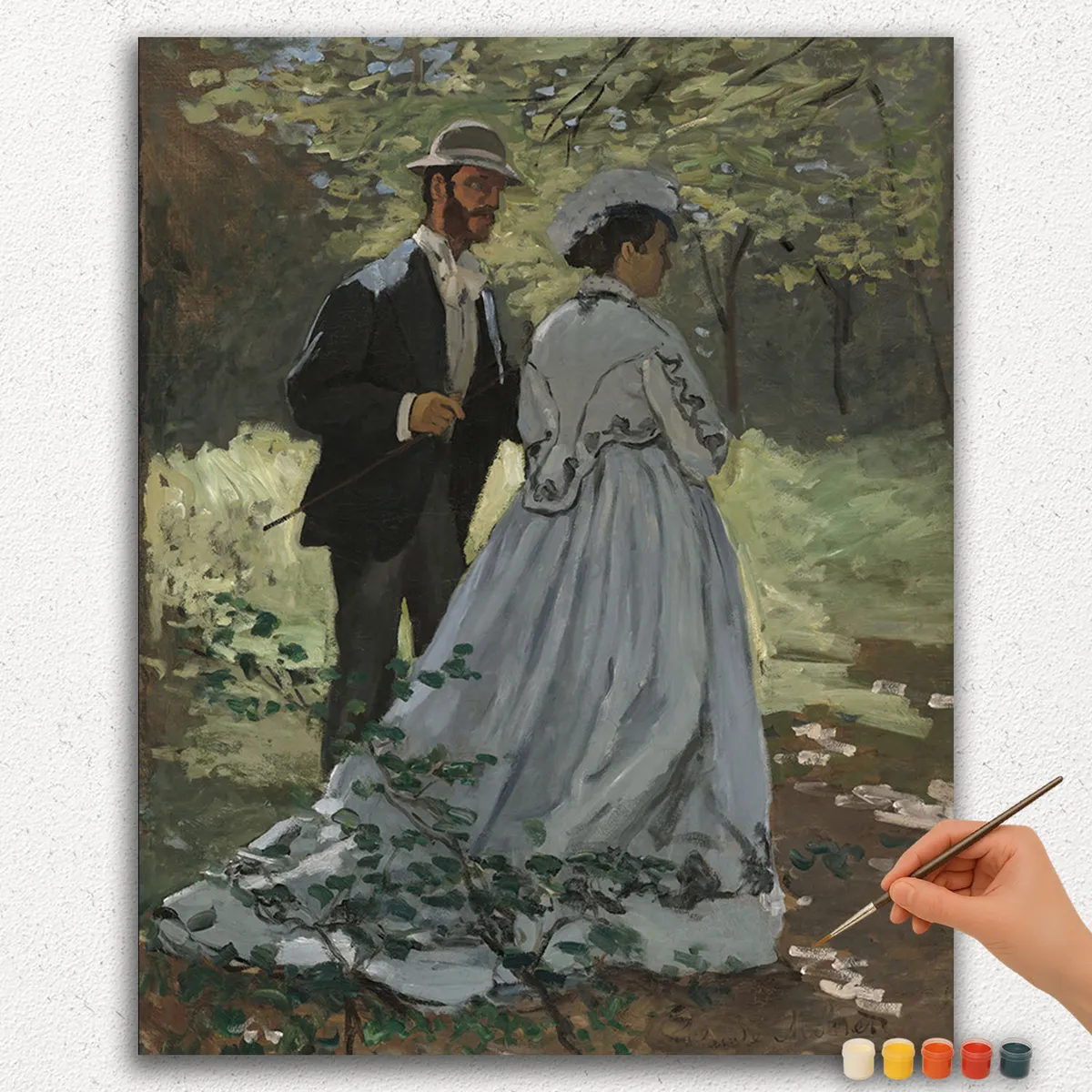 Bring Claude Monet’s masterpiece to life with our “Bazille and Camille (Study for Déjeuner sur l’Herbe) (1865)” Paint by Numbers Kit. This stunning DIY project features Monet’s preparatory study showing his future wife Camille Doncieux and friend Frédéric Bazille in a beautiful outdoor scenes.