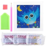 Who’s flying through the sparkling night? Our “Blue Night Owl in Flight” Diamond Painting is a magical adventure for little dreamers! This kit features a beautiful blue owl with widely spread wings, soaring against a starry sky. The simple shapes and vibrant blue color make this motif a real eye-catcher and ensure quick crafting fun. It’s a wonderful design from the World of Birds and Mythical Creatures.