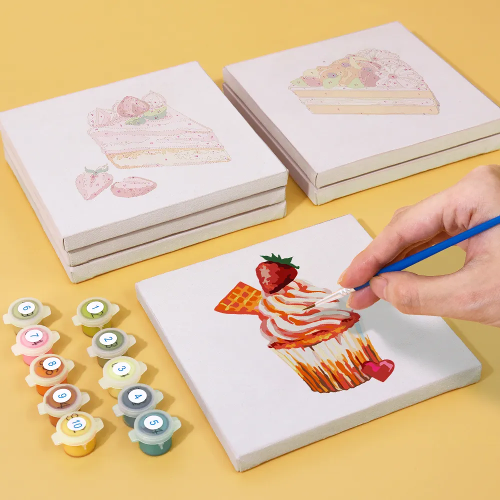The “Cakes and Donuts” Mini Paint by Numbers set is a sweet treat for creative minds. Colorful donuts with sprinkles and lovingly decorated pieces of cake make this motif a real treat on the canvas. Ideal for children, beginners or as a small gift for those with a sweet tooth. The mini canvas, numbered acrylic paints and the fine brush ensure a relaxed and happy painting experience.