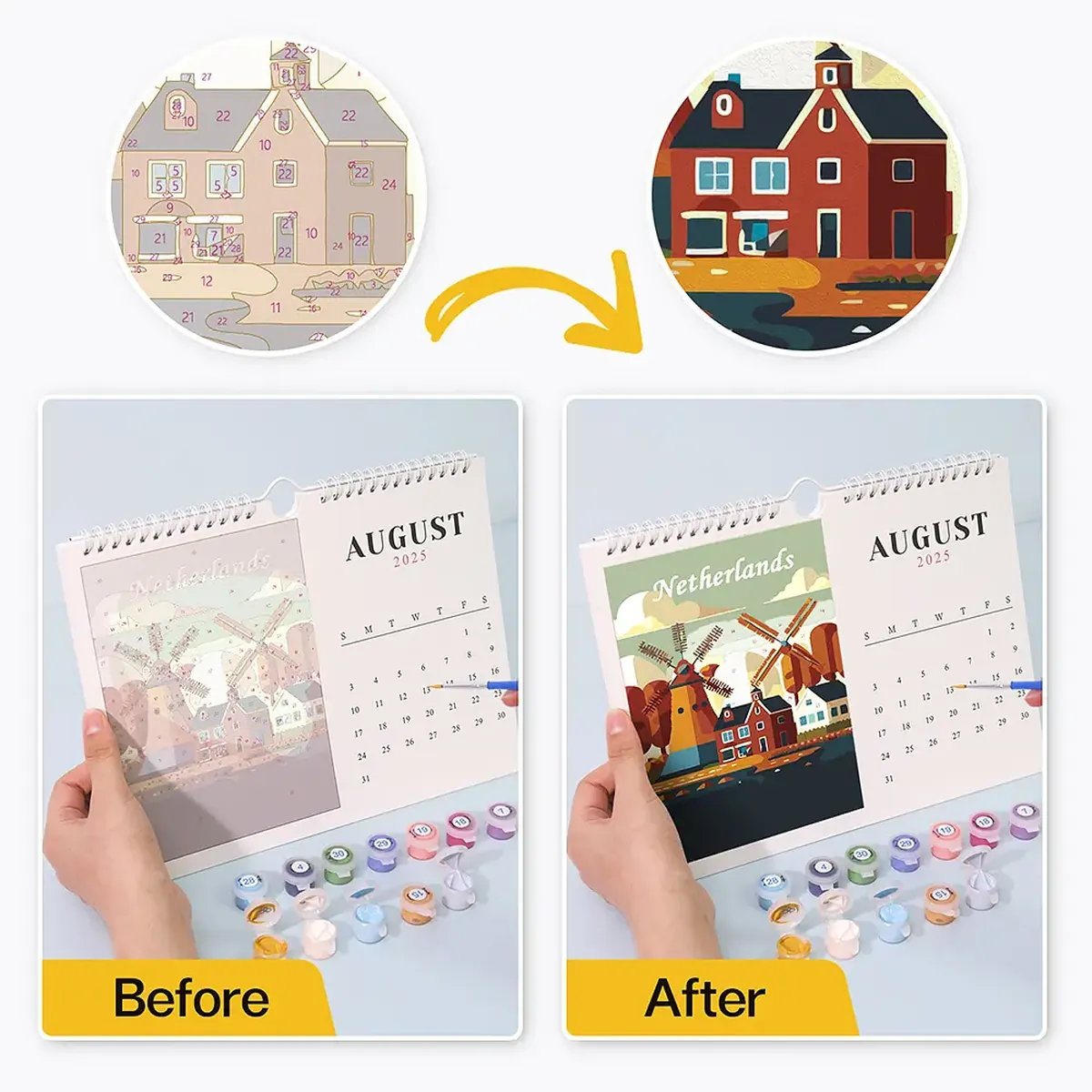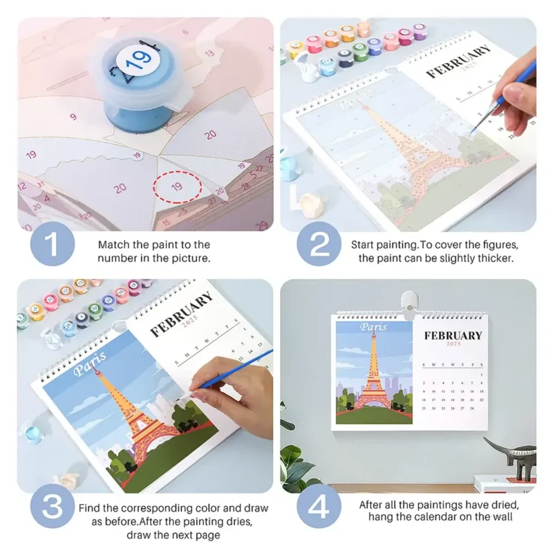 The 2025 calendar is similar to any paint by numbers project. If you are familiar with paint by number you can quickly complete the calendar. If you are unfamiliar with DIY painting by number then you can follow these simple steps