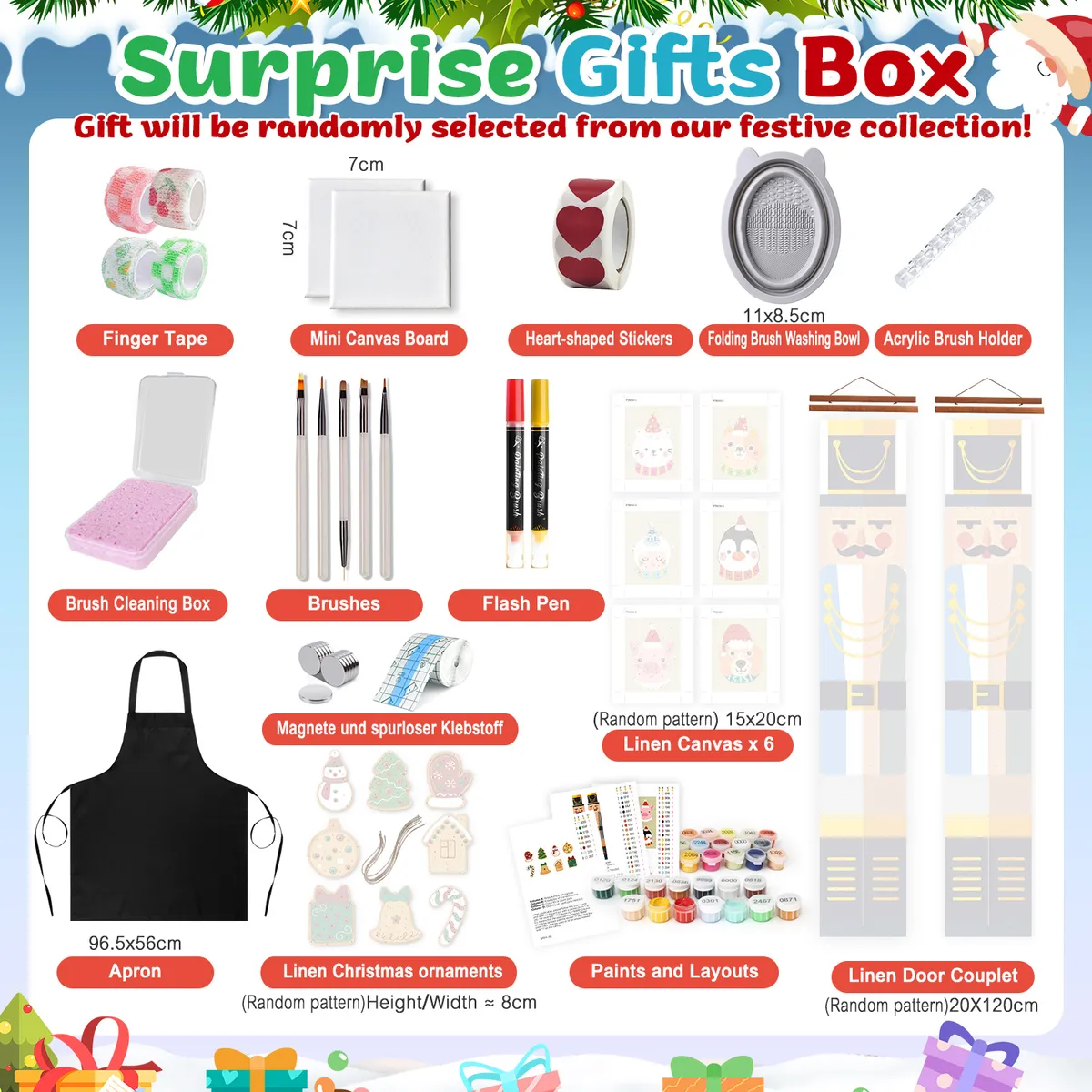 This isn’t just an advent calendar; it’s a daily creative experience. Behind each of the 12 doors lies a delightful surprise: a unique, mini-painting canvas waiting to be brought to life.