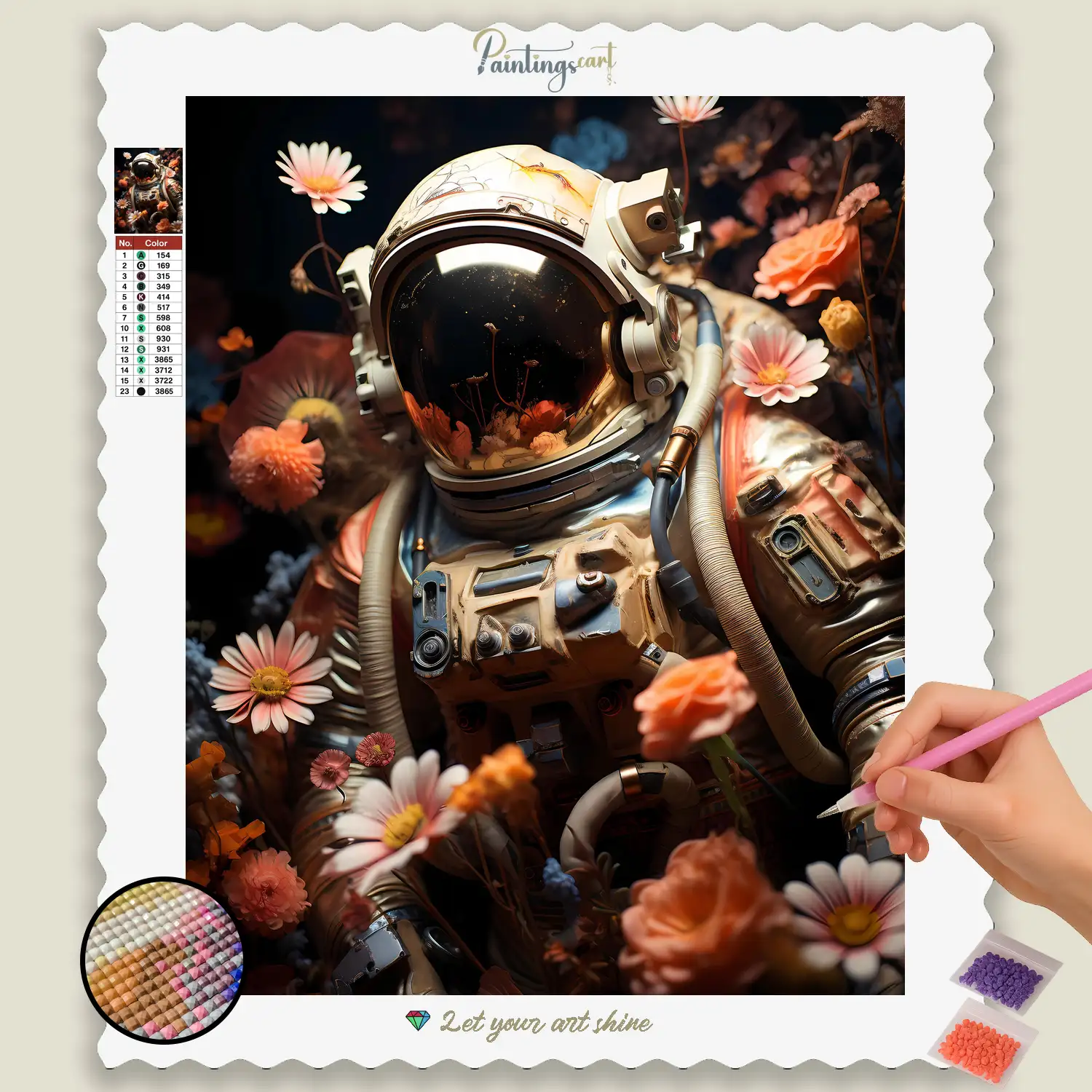 Escape into the infinite expanse of the universe with our stunning “Cosmic Spring in Space” Diamond Painting! This fascinating motif captures the essence of a cosmic rebirth, where galaxies bloom in full splendor and nebulae appear like interstellar flowerbeds. Each glittering stone helps you bring to life the vibrant colors of distant stars, the swirling forms of gas and dust, and the infinite beauty of space. It’s a tribute to the infinite possibilities, unimaginable beauty, and silent wonders that lie beyond our Earth. An ideal Diamond Painting for anyone who yearns for the mysteries of the universe and wants to bring a touch of cosmic wonder into their home.