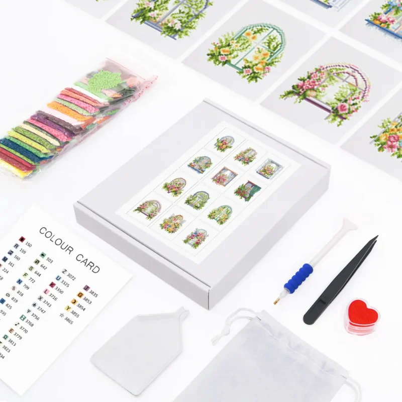 Gaze through twelve enchanting windows into blooming gardens! Our 12-piece “Windows to the World Collection” from the Mini Diamond Paintings series captures the romantic idyll of flower-adorned windows. In this pack, you’ll find twelve different motifs that evoke the feeling of a perfect summer day – from rustic wooden windows with red geraniums to elegant city windows with lush flower boxes.