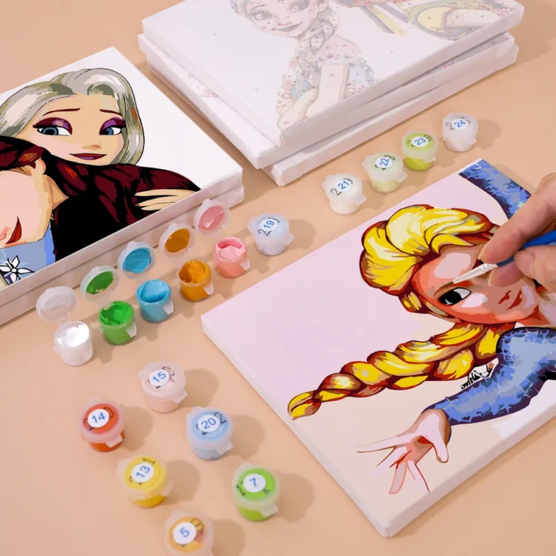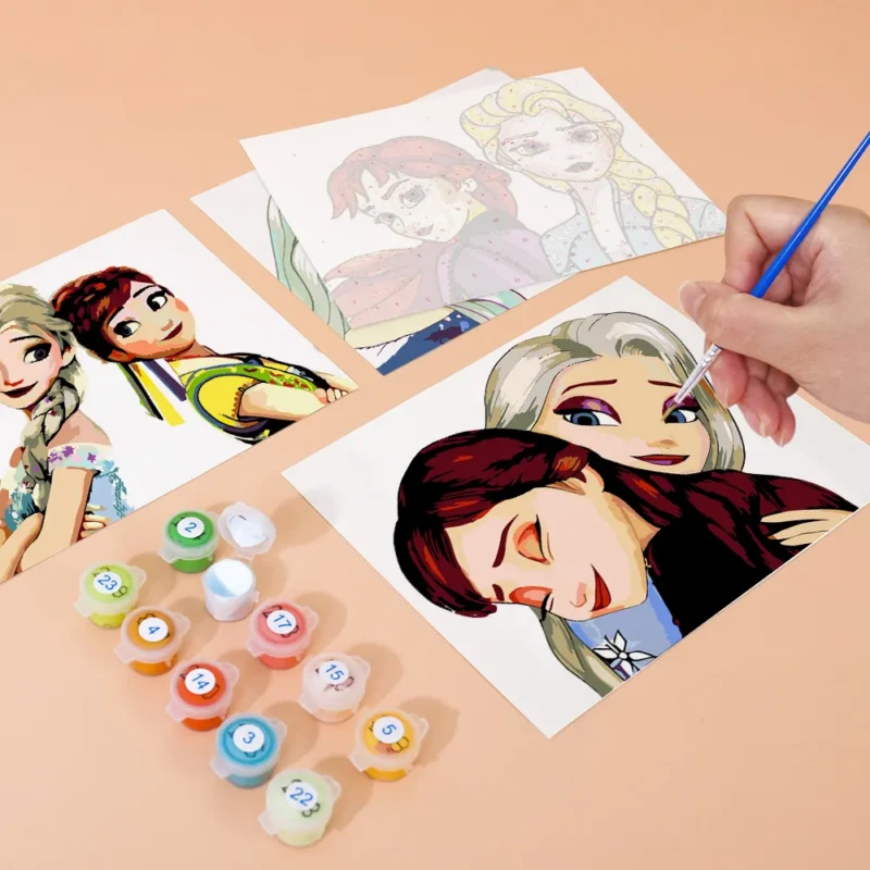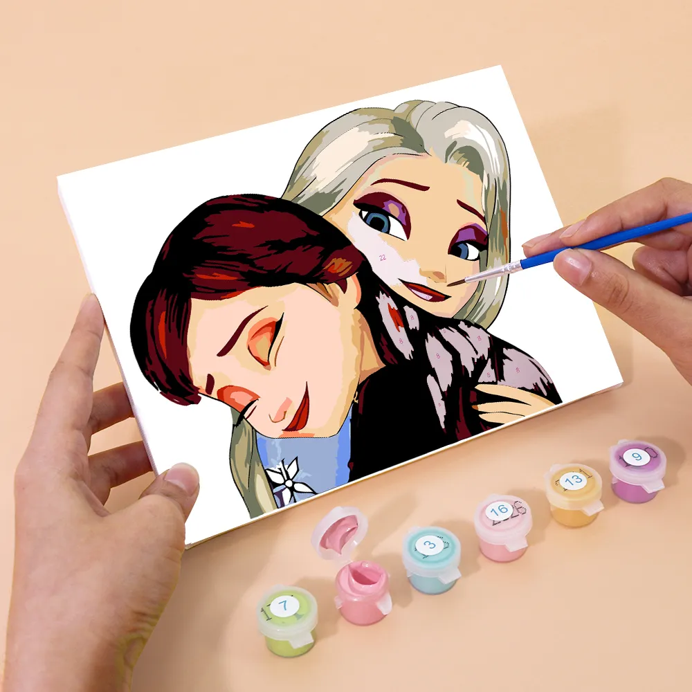 The Mini Paint-by-Numbers set “Forever Sisters: Elsa & Anna” showcases the inseparable bond of two beloved princesses from Arendelle. This heartwarming motif with wintry colors brings magic, love, and adventure directly to your canvas. Perfect for Frozen fans, creative children, or as an enchanting gift. The pre-printed mini canvas, brilliant acrylic paints, and the fine brush make the painting experience simple and fairytale-like – even for beginners.