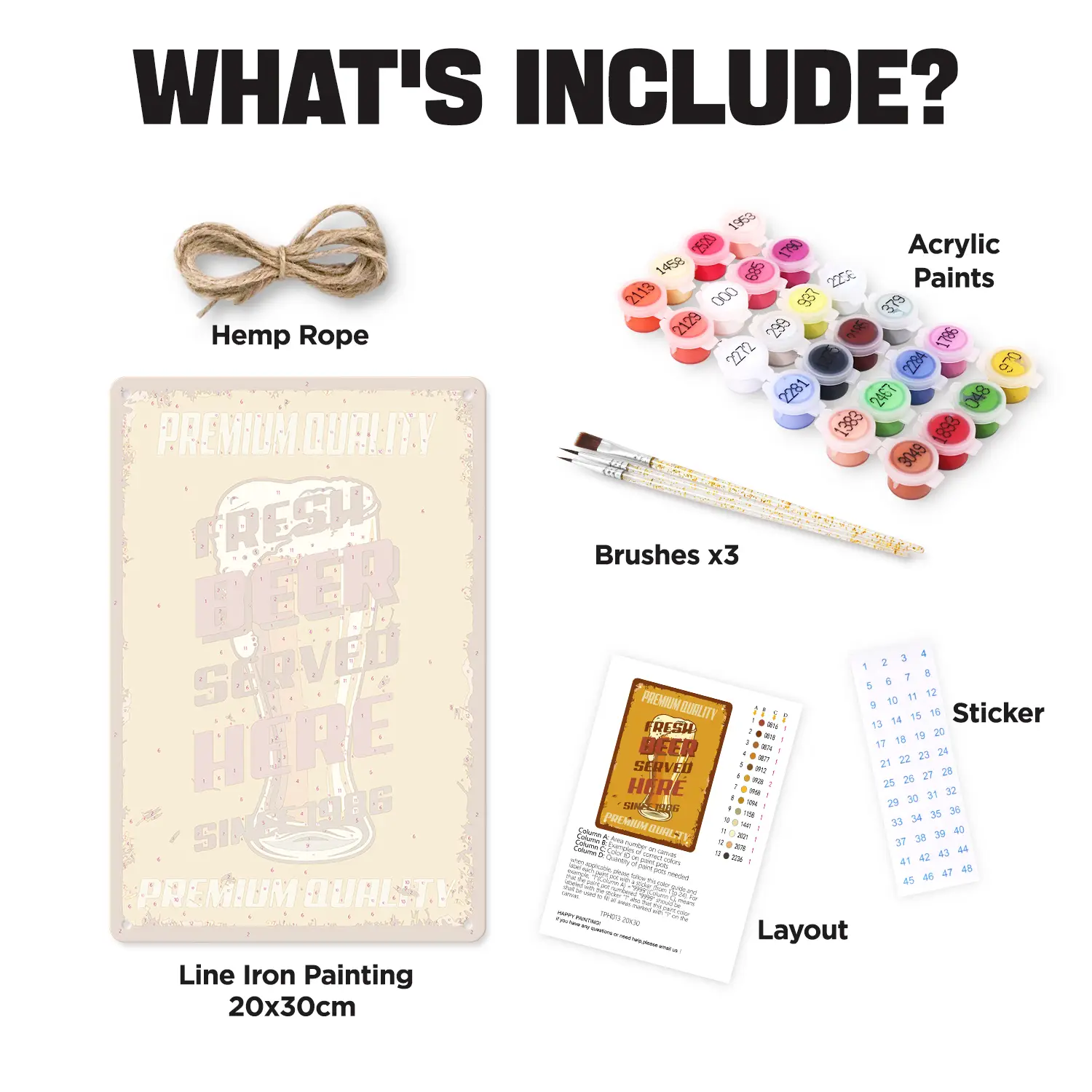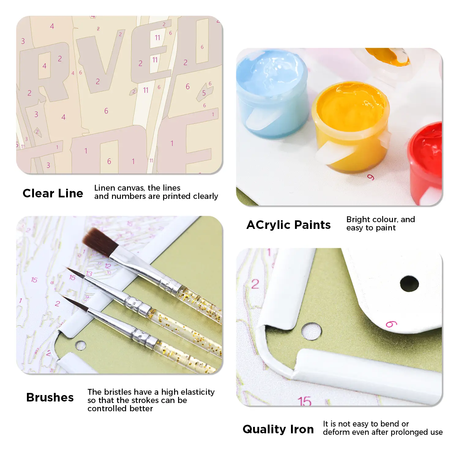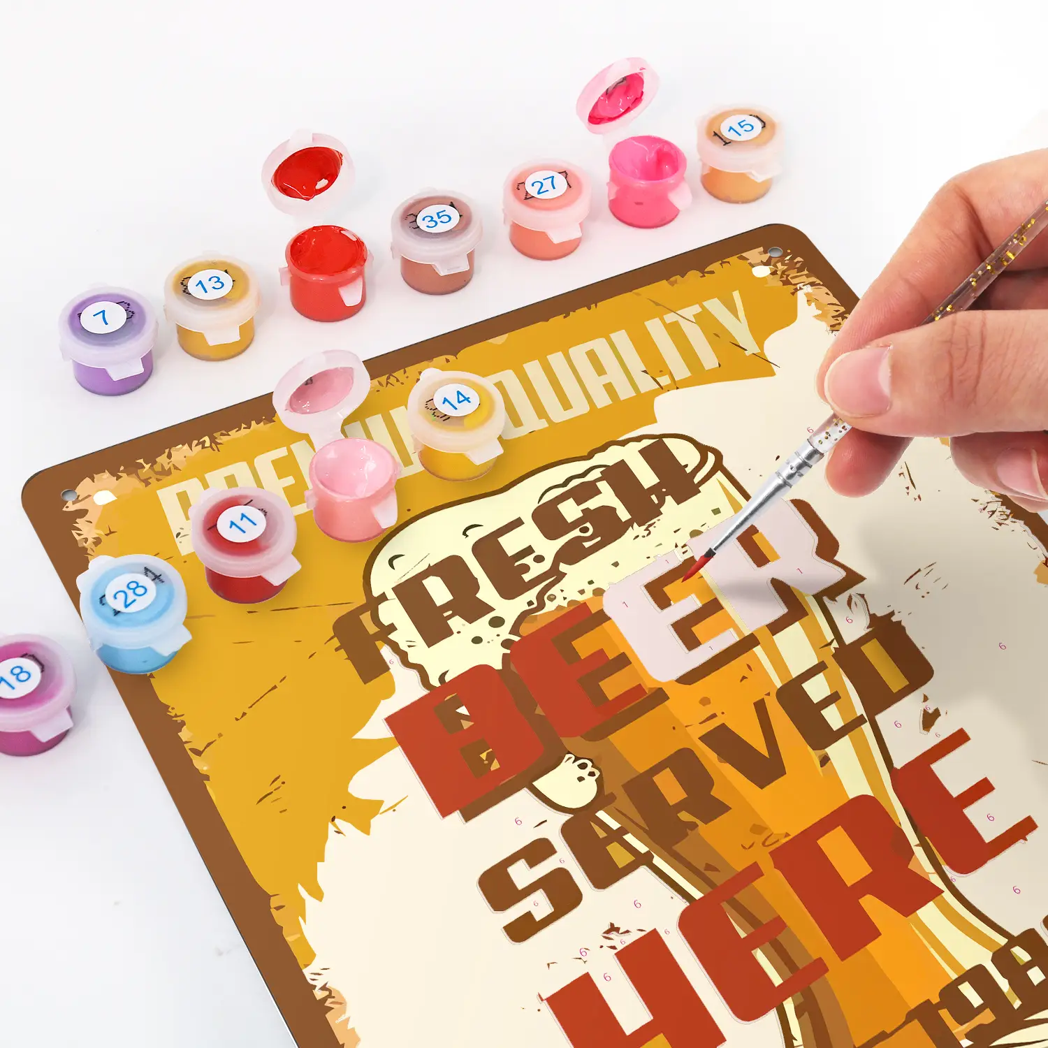 You will get all the tools and accessories required to complete your metal poster paint by numbers project in the kit.