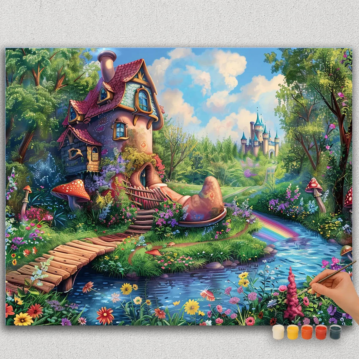 Transform your living space with “House in Nature’s Lap,” a DIY painting kit that brings the beauty of nature indoors. This relaxing paint-by-numbers set features a serene house nestled among trees and flowers.