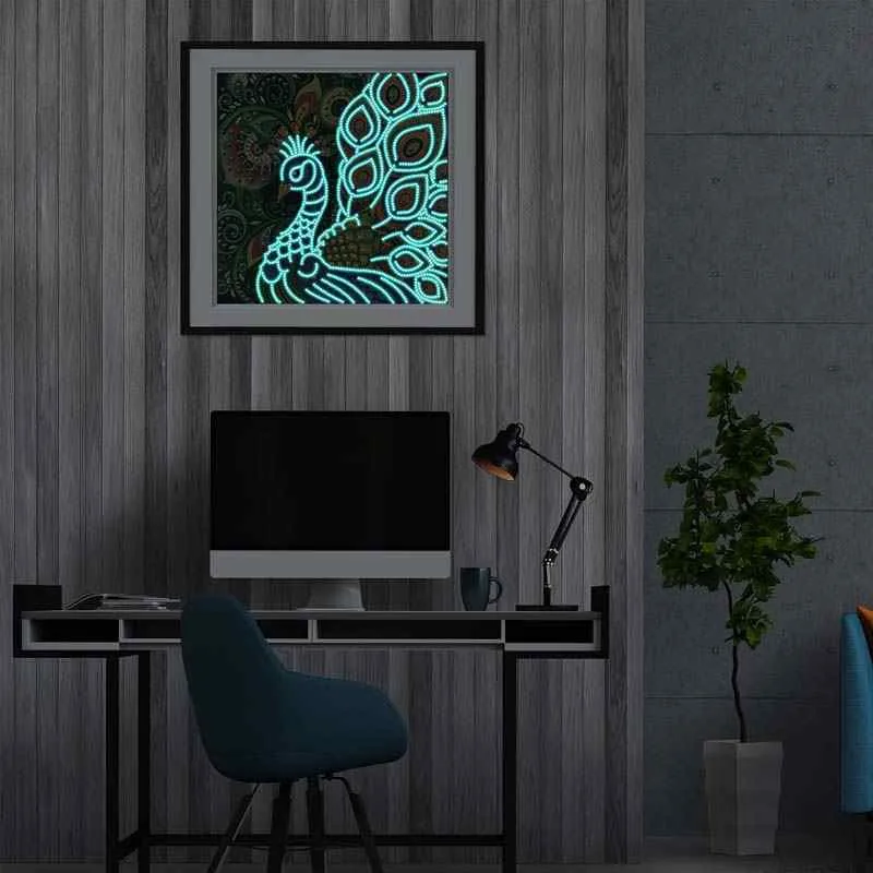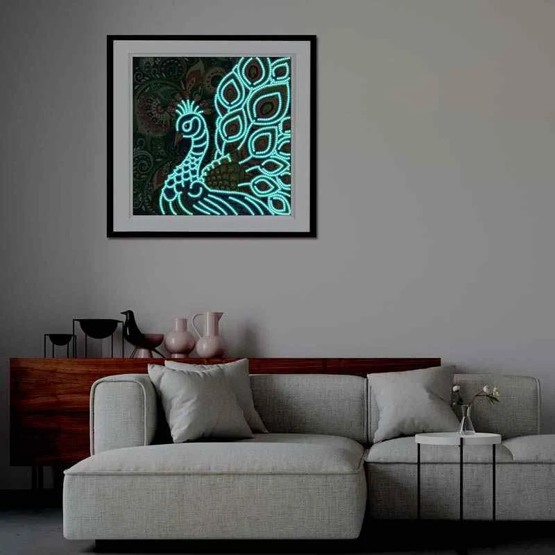 This set is an absolute highlight of our luminous pictures collection and perfect for anyone who loves elegant and exotic animal motifs. Designing the detailed feather display is a captivating and rewarding experience. As part of our collection of magnificent birds, this artwork is an exceptionally noble gift idea for a special occasion. Bring home a symbol of beauty and majesty that impresses by day and night.
