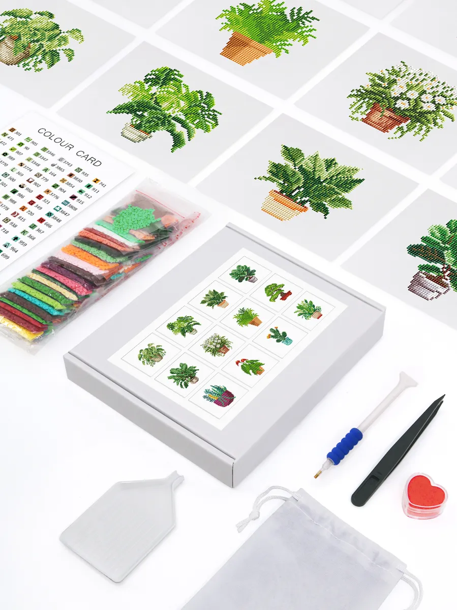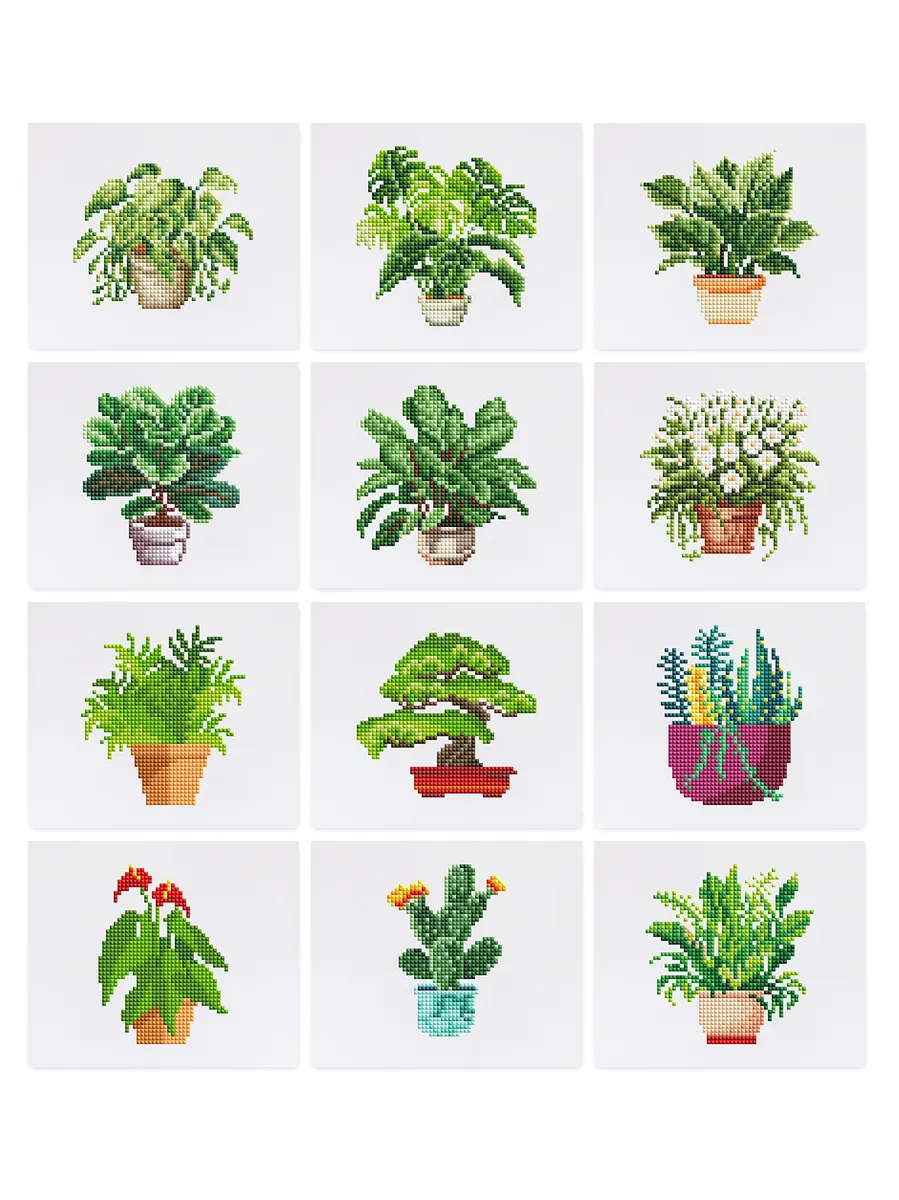 Create your own evergreen windowsill with our 12-piece “Lush Living Collection” set! This set from our Mini Diamond Paintings range is a tribute to the most beloved houseplants that make our homes cozier. In this package, you’ll find twelve different designs of stylish plants in decorative pots – from cacti and fiddle-leaf figs to UFO plants and snake plants.