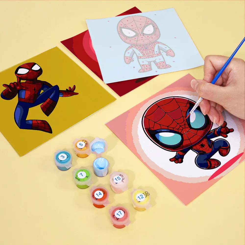 Das Mini-Malen-nach-Zahlen-Set „Mini Spiderman“ bringt den ikonischen Superhelden in niedlicher Comic-Version direkt auf deine Leinwand. Mit großen Augen, leuchtendem Anzug und verspieltem Stil ist dieses Motiv ideal für Kinder und Marvel-Fans.