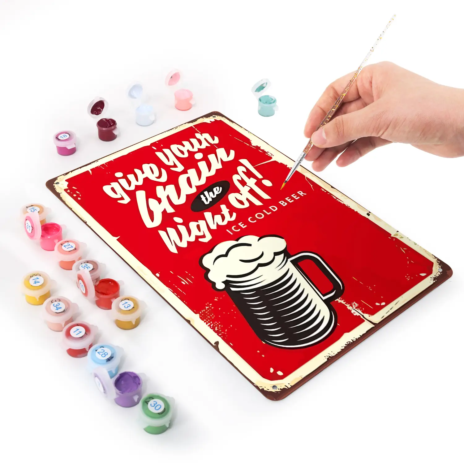 You will get all the tools and accessories required to complete your metal poster paint by numbers project in the kit.