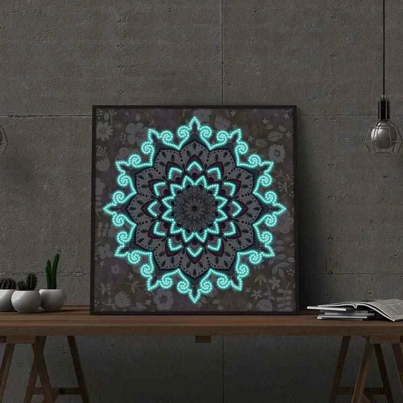 Experience a true kaleidoscope of colors that never stops shining, even in the dark! Our “Rainbow Glow Mandala” is a unique artwork that combines the harmonious symmetry of a mandala with an explosion of vibrant, luminous colors. By day, it’s a colorful eye-catcher, but by night, it comes alive: special glow-in-the-dark gems, integrated into the design, emit a soft, multicolored glimmer, highlighting its fascinating structure.