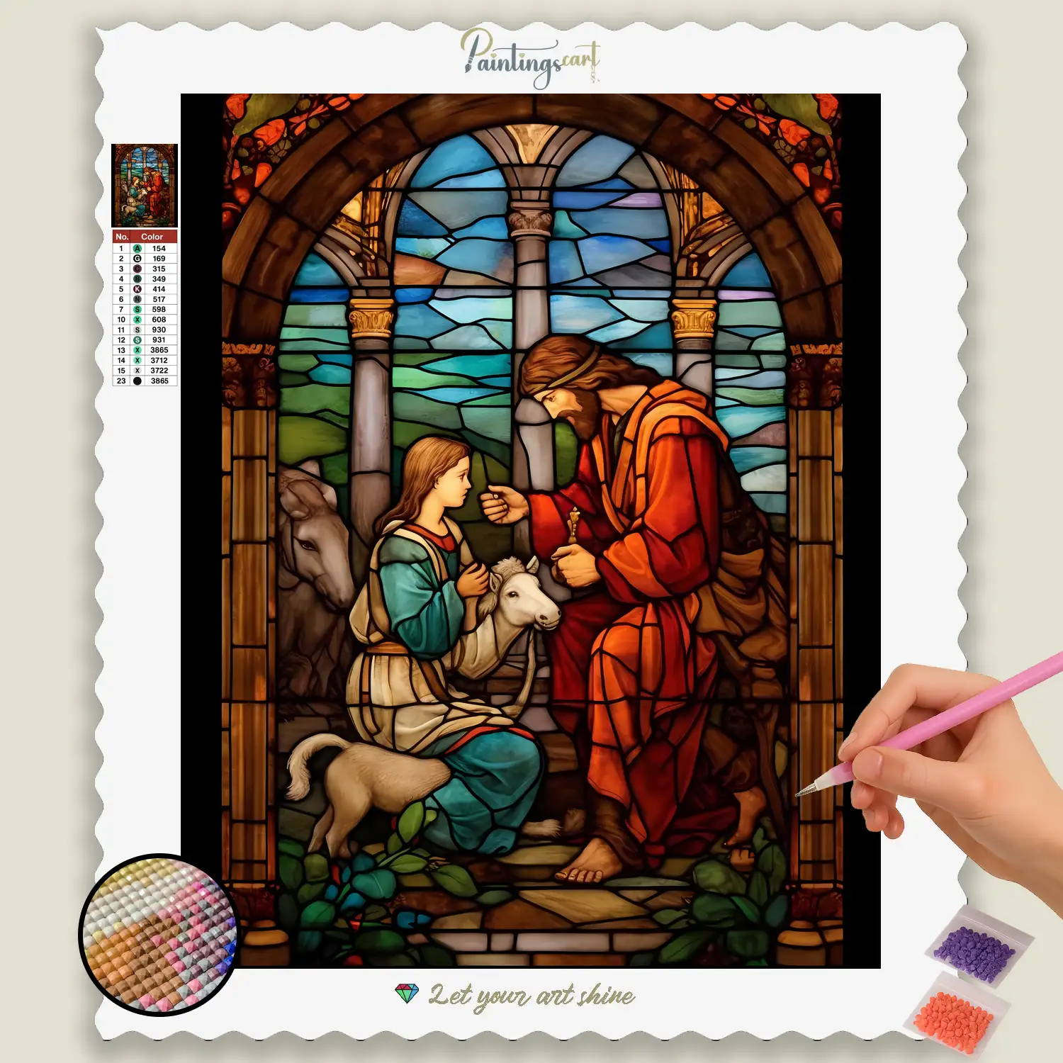 Immerse yourself in a world of divine inspiration with our sublime “Religious Stained Glass” Diamond Painting! This devotional motif captures the timeless beauty and profound spiritual expression of stained glass windows, often found in sacred spaces. Each sparkling gem helps you bring to life the vibrant colors, intricate patterns, and sacred aura as they are filtered through the glass, filling the space with transcendence. It is a tribute to faith, devotion, and the endless beauty found in religious art that has inspired generations of believers. An ideal Diamond Painting for anyone seeking a source of reflection, contemplation, and deep spiritual meaning in their home.