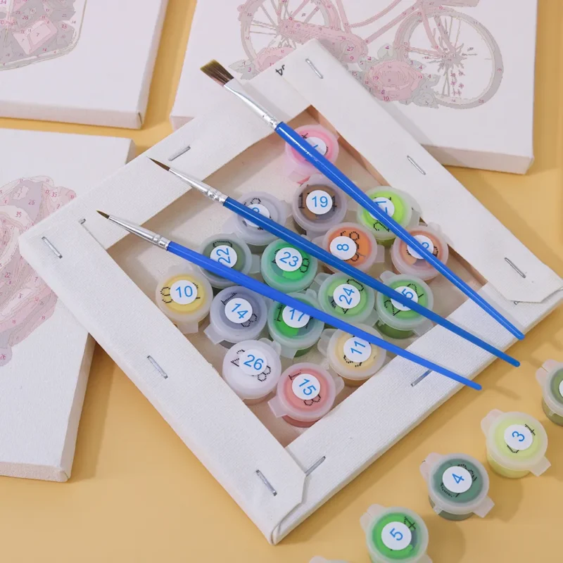 The “Romantic Flowers” Mini Paint-by-Numbers set brings delicate blossoms, soft colors, and loving details to the canvas. Whether roses, peonies, or fantasy flowers – this motif is perfect for romantic decoration or as a DIY gift for special people. Thanks to its handy format, the set is ideal for beginners, creative breaks, or as a relaxing project in the evening. With a pre-printed canvas, acrylic paints, and a brush, the artwork is easy to create.