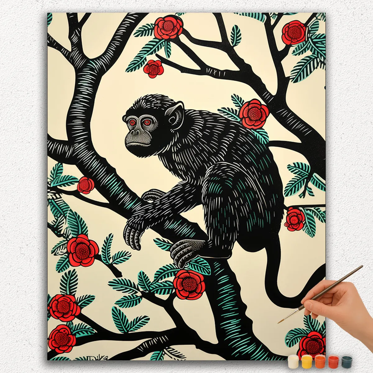 Unleash your inner artist with The Black Monkey Paint by Numbers kit. This captivating set transforms a blank canvas into a stunning masterpiece of a majestic black monkey. The kit includes pre-numbered canvas, acrylic paints, and brushes.