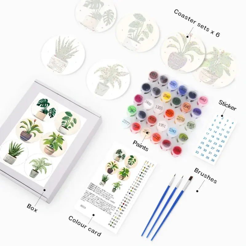 You can quickly complete your The Plants – DIY Drink Coasters with a paint-by-number project using the following steps.