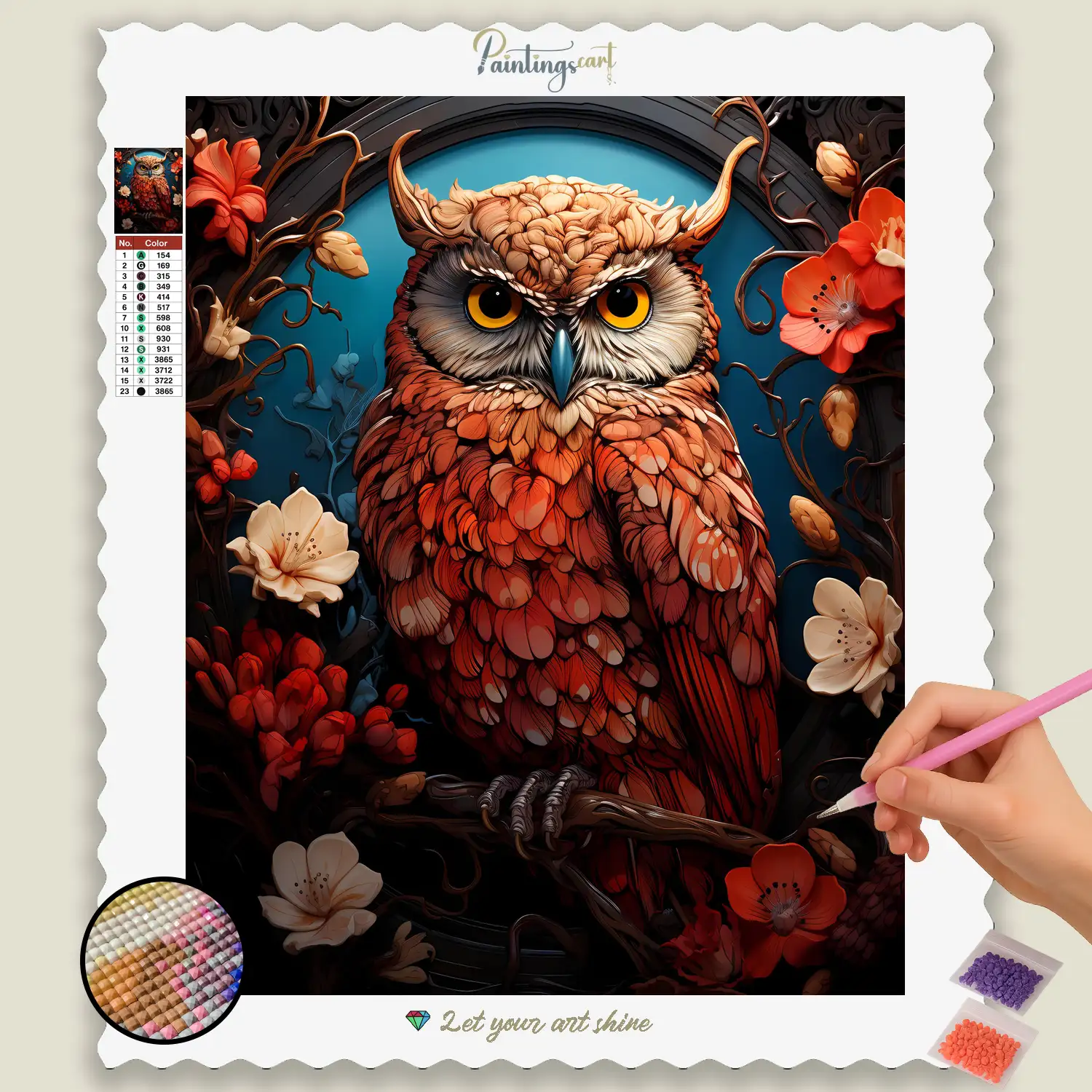 Upptäck nattens mystiska visdom med vårt fängslande “Amazing Owl”-diamantmåleri! Detta imponerande motiv fångar en ugglas, majestätiska närvaro, vars genomträngande blick vittnar om djup intelligens och tyst iakttagelse. Varje glittrande sten hjälper dig att föra till liv dess fina fjäderdräkt, stora, uttrycksfulla ögon och aura av mystik som omger dessa nattliga jägare. Det är en hyllning till anpassningsförmåga, skönheten, symboliken av visdom och den oändliga fascination som natten bär på. Ett idealiskt Diamantmålning val för den som uppskattar inspirerande djurmotiv, symbolism och en touch av magisk charm i hemmet.